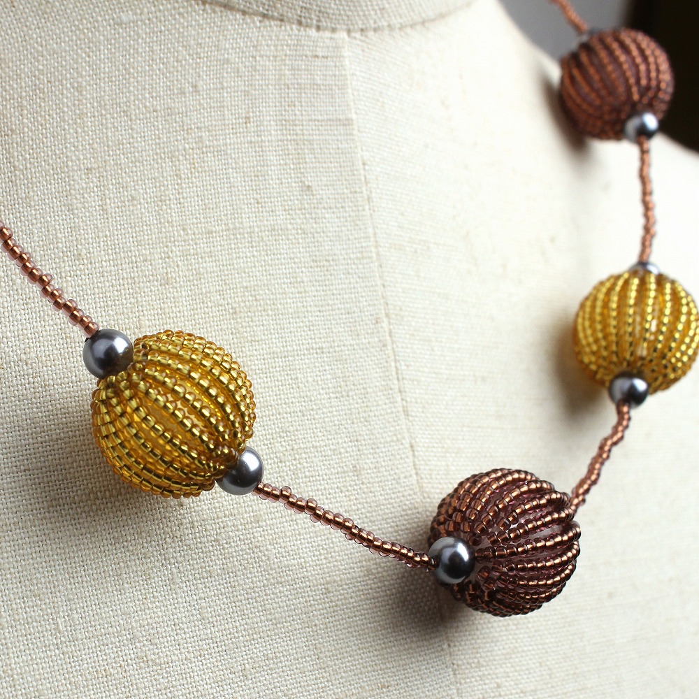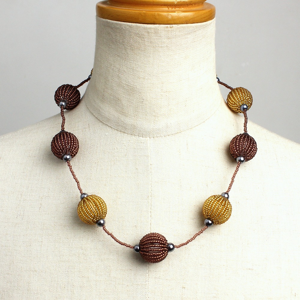 南アフリカのビーズを贅沢に使用した個性的なネックレスです。モダンなフォルムがその美しさをより際だたせています。