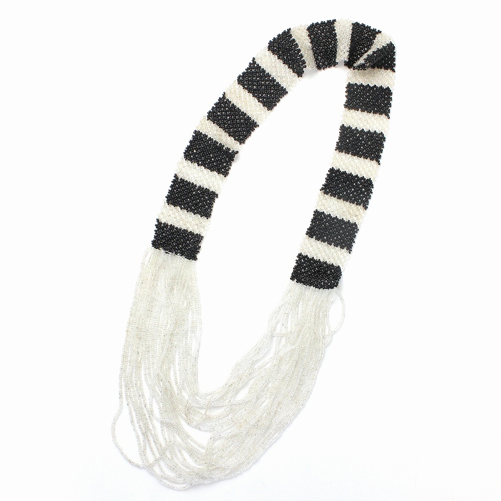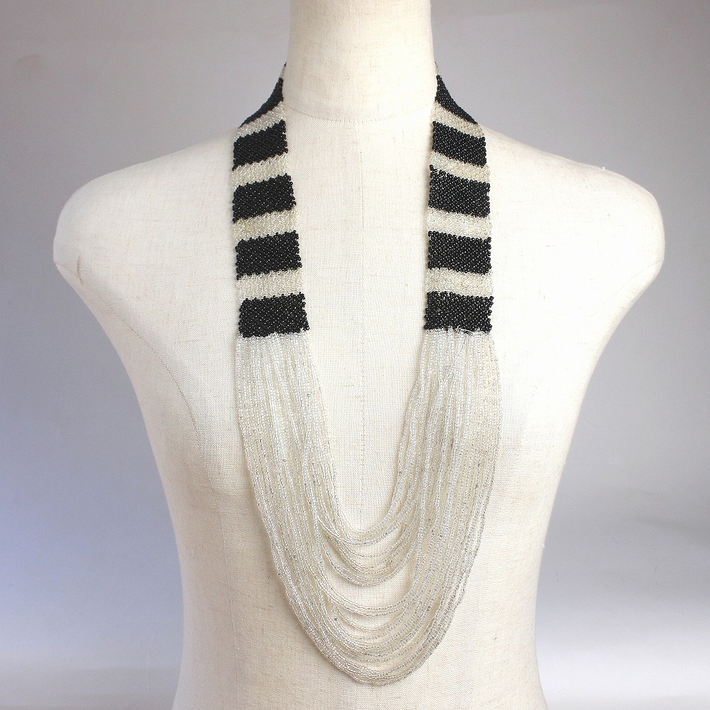 南アフリカのビーズを贅沢に使用したフリンジネックレスです。洗練されたデザインがその美しさをより際だたせています。