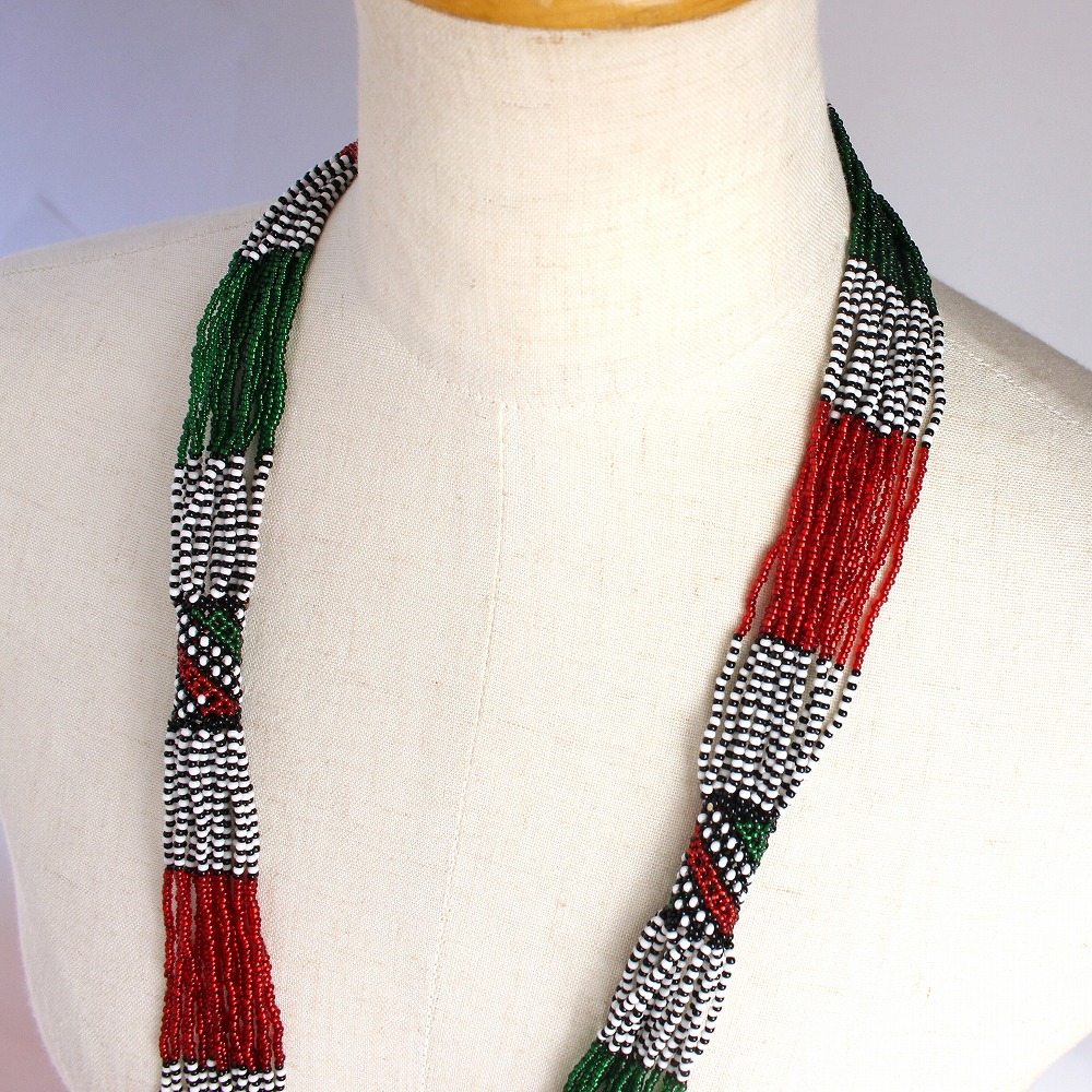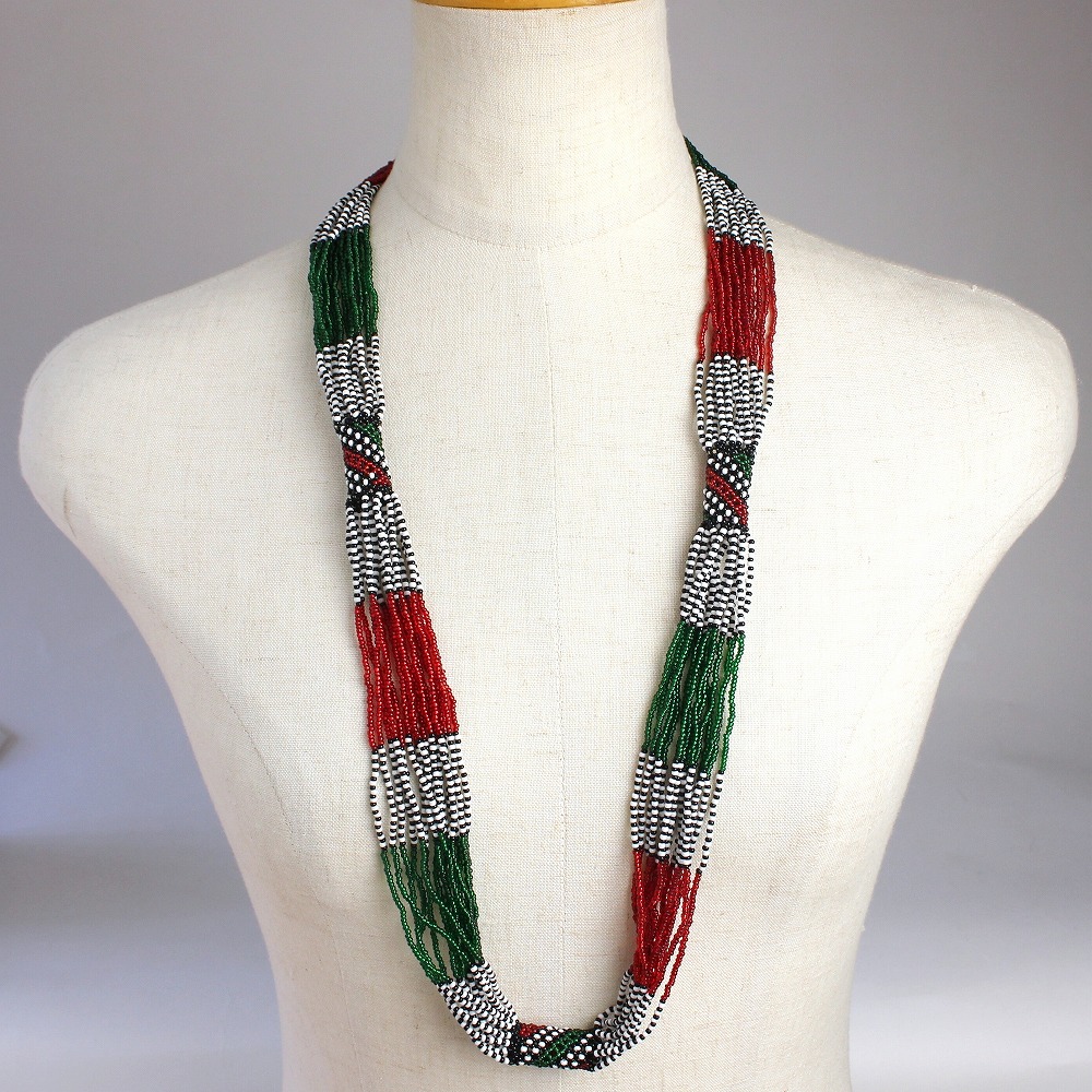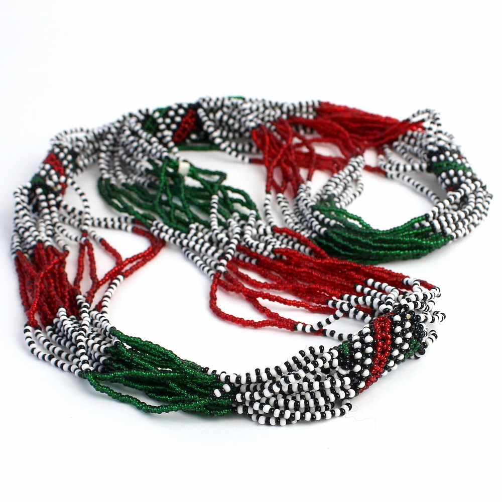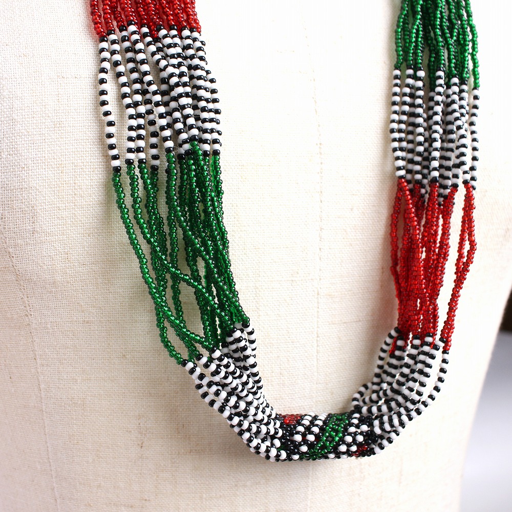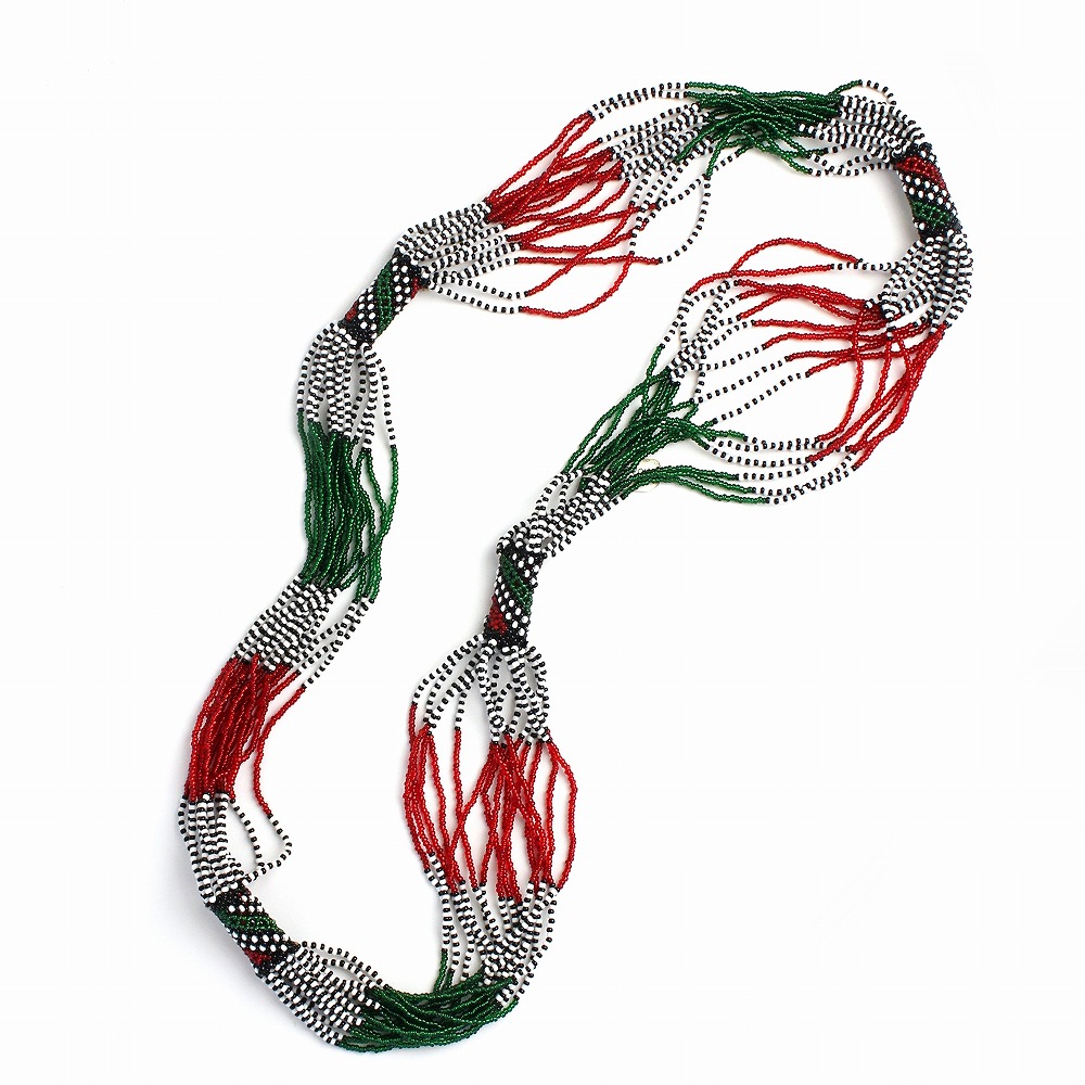 南アフリカのビーズを贅沢に使用したロングネックレスです。南アフリカの伝統柄が手作業で編みこまれたカラフルなビーズアクセサリーです。