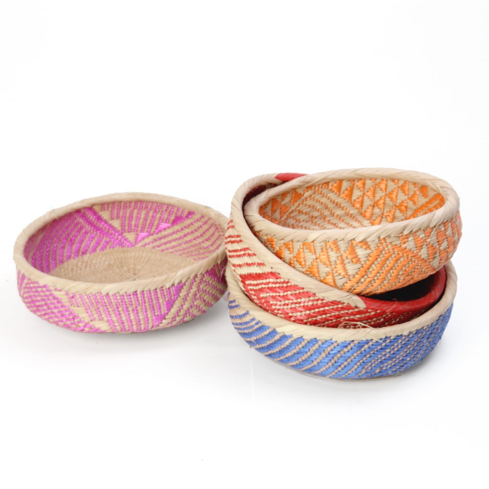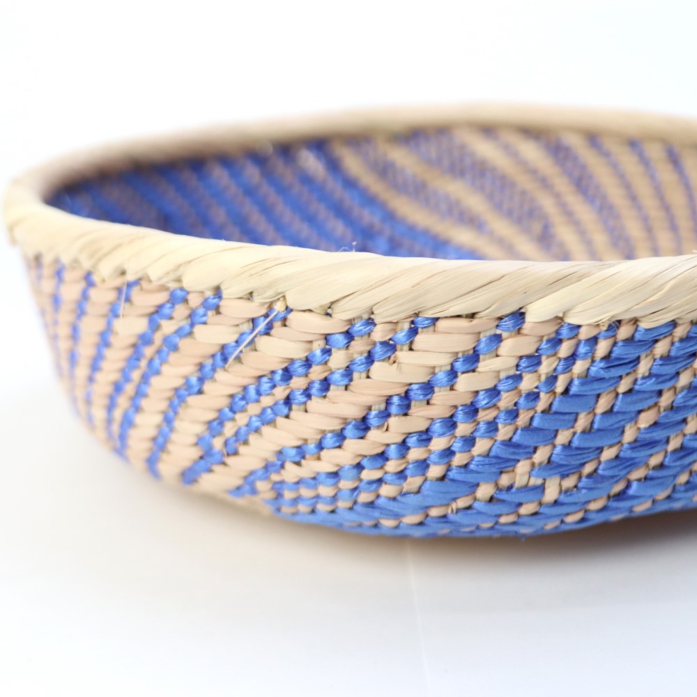 イララと呼ばれるパーム椰子とビニールテープをリサイクルして編み込んだボウルカゴです。フルーツや小物入れなどにおすすめ。存在感のあるかごです。ジンバブエのトンガ人の女性が一つ一つ編み上げる柄は実に多種多様、一つとして同じ柄が無いほどです。柄アソート