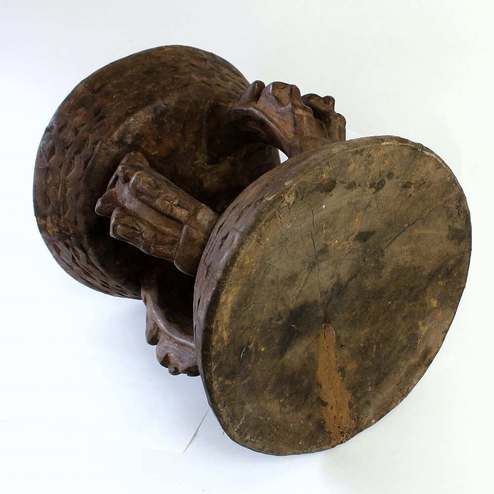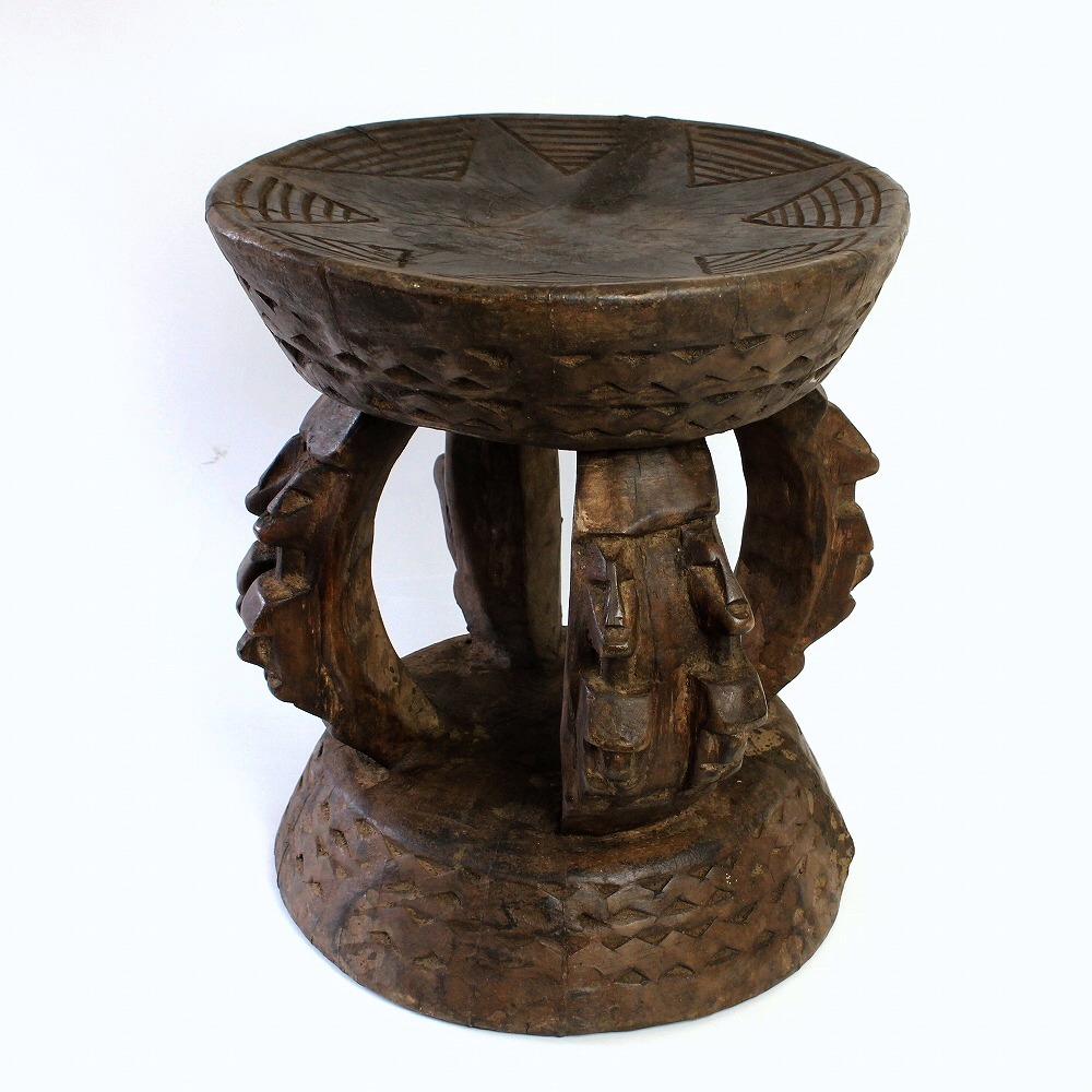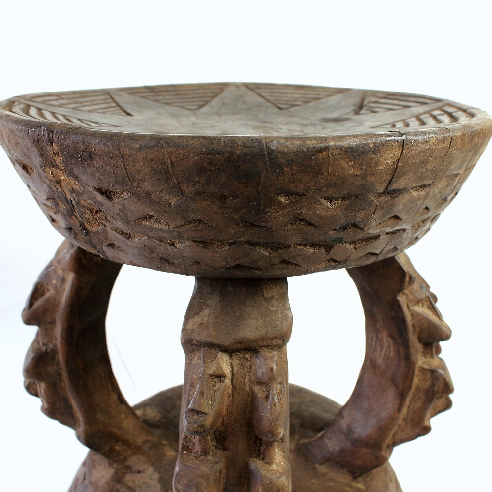 マリのドゴンのスツールです。一本の木をくり抜いたプリミティブな力強いフォルム、ドゴン伝統の木彫が圧巻です。木の自然の色味とと質感が美しい、和の空間にもよく合うデザインです。アフリカンモダンなプリミティブ家具でお部屋のコーディネートをお楽しみください。