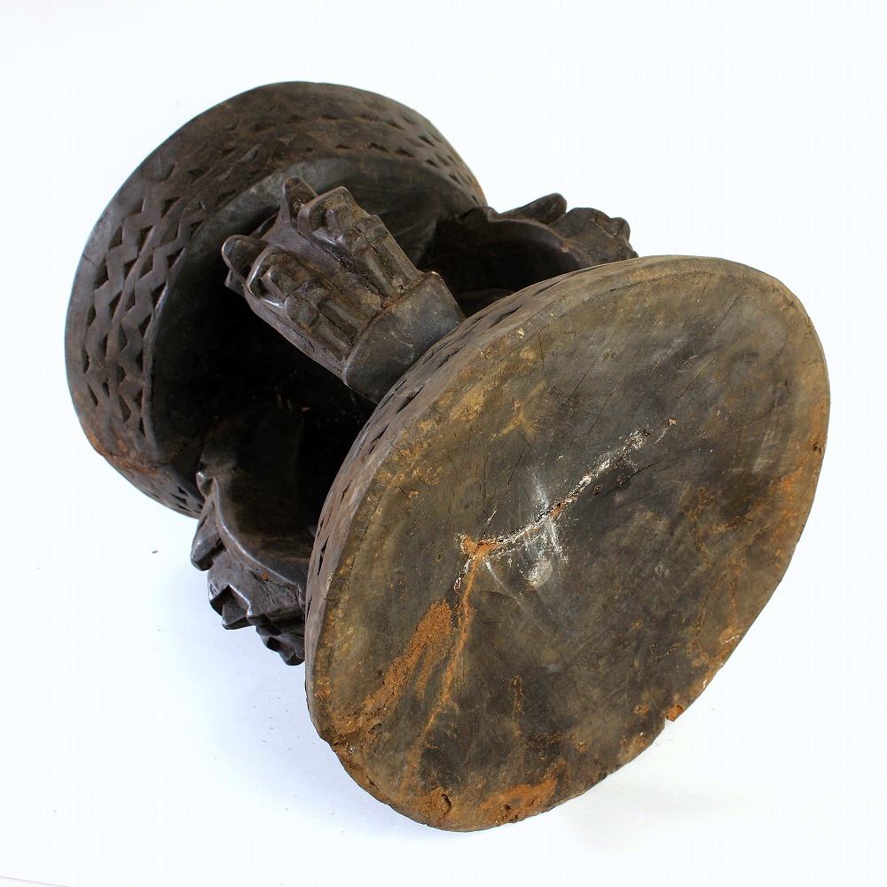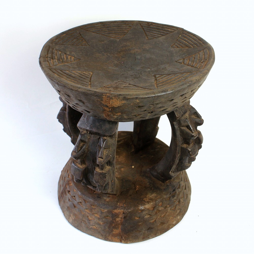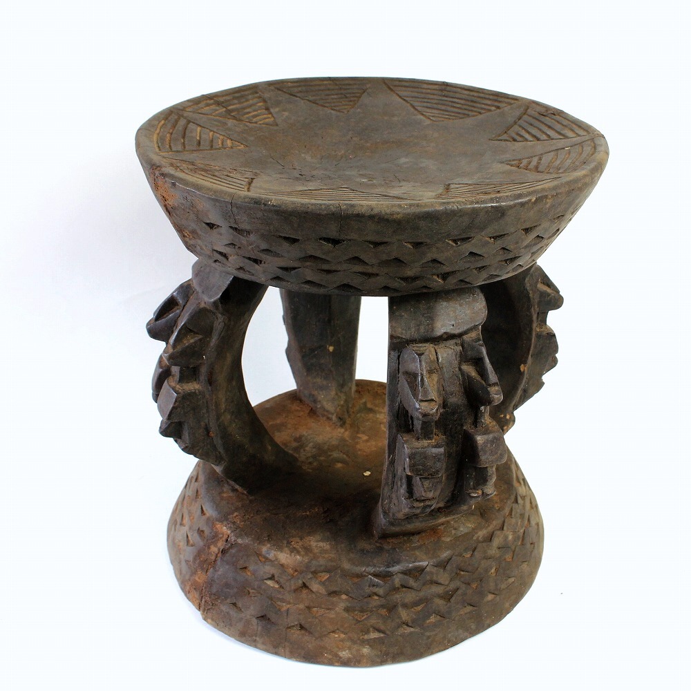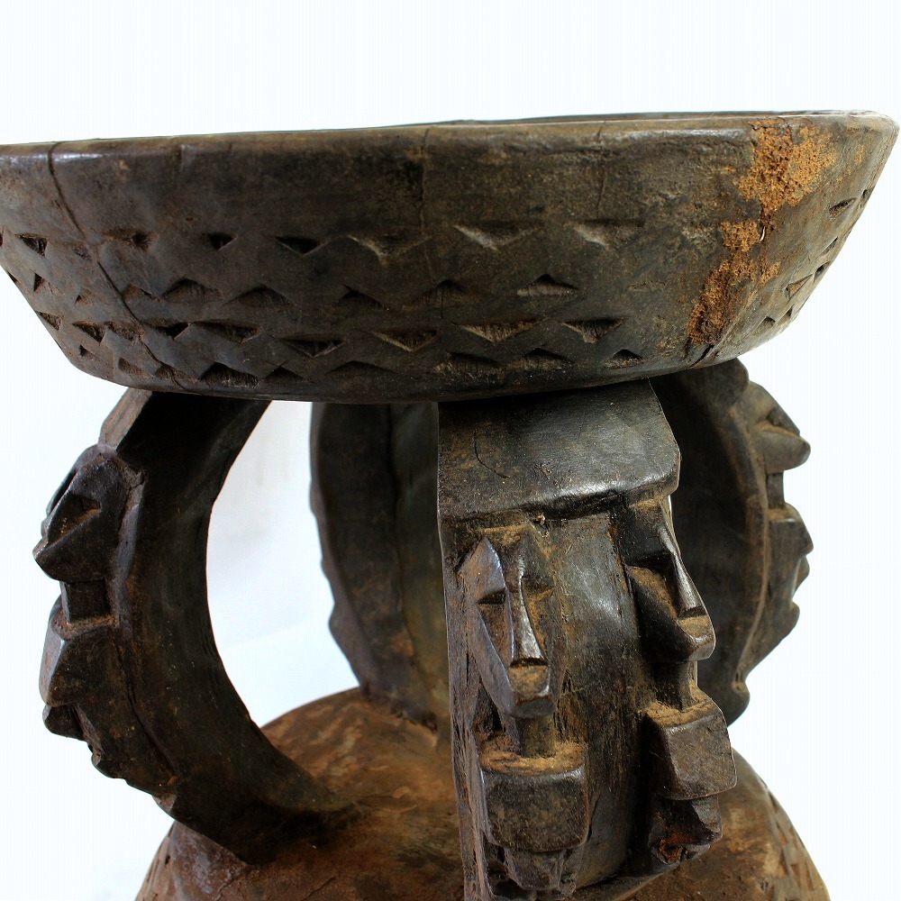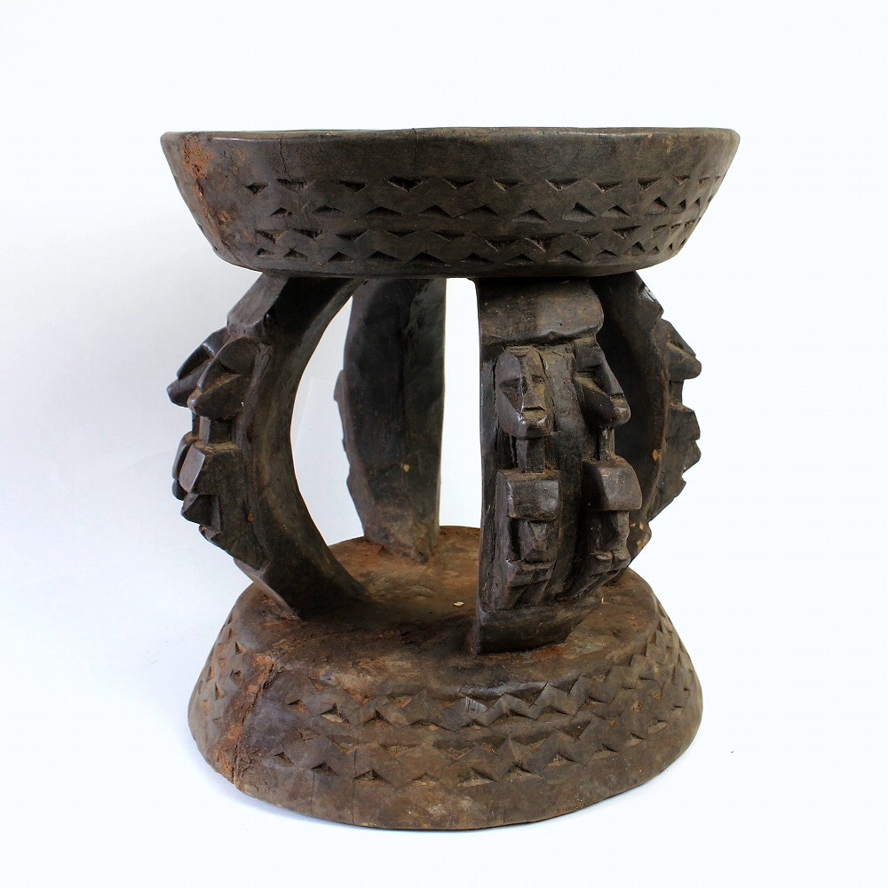 マリのドゴンのスツールです。一本の木をくり抜いたプリミティブな力強いフォルム、ドゴン伝統の木彫が圧巻です。木の自然の色味とと質感が美しい、和の空間にもよく合うデザインです。アフリカンモダンなプリミティブ家具でお部屋のコーディネートをお楽しみください。※補修箇所あり