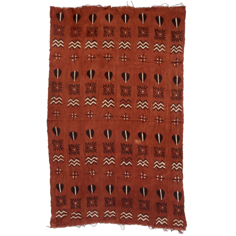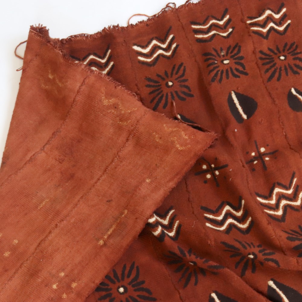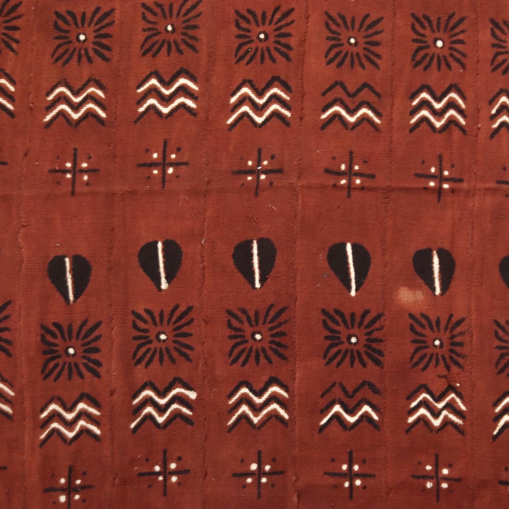伝統的な方法で何度も行程を重ね染められたマリの泥染布です。アフリカ伝統のプリミティブなデザインです。ソファカバー、テーブルクロス、タペストリーなど、インテリアクロスとして、広くお使いになれます。天然染料のため色落ちがあります。洗濯の際にはドライクリーニングか水洗いをおすすめします。一点物