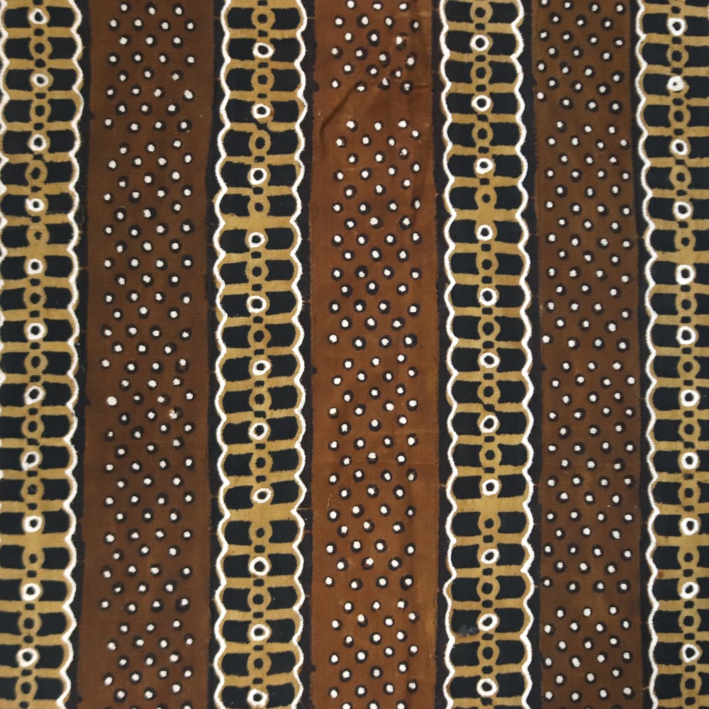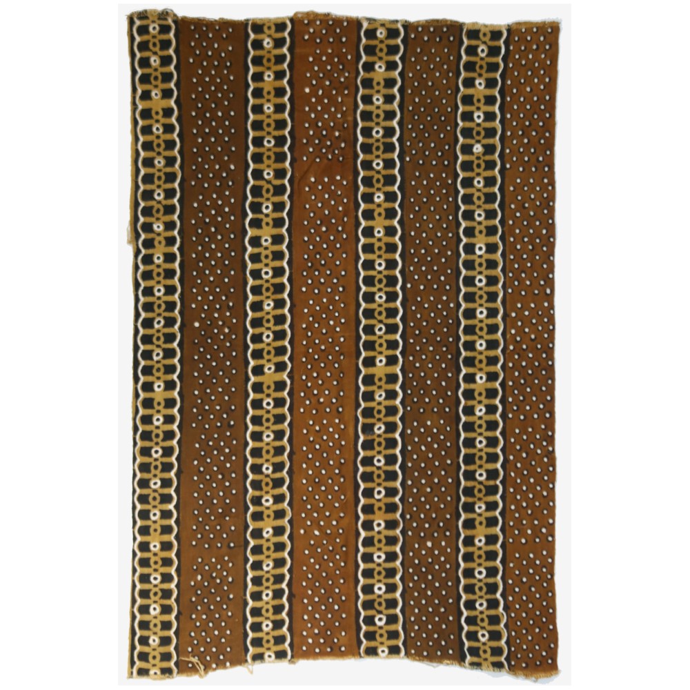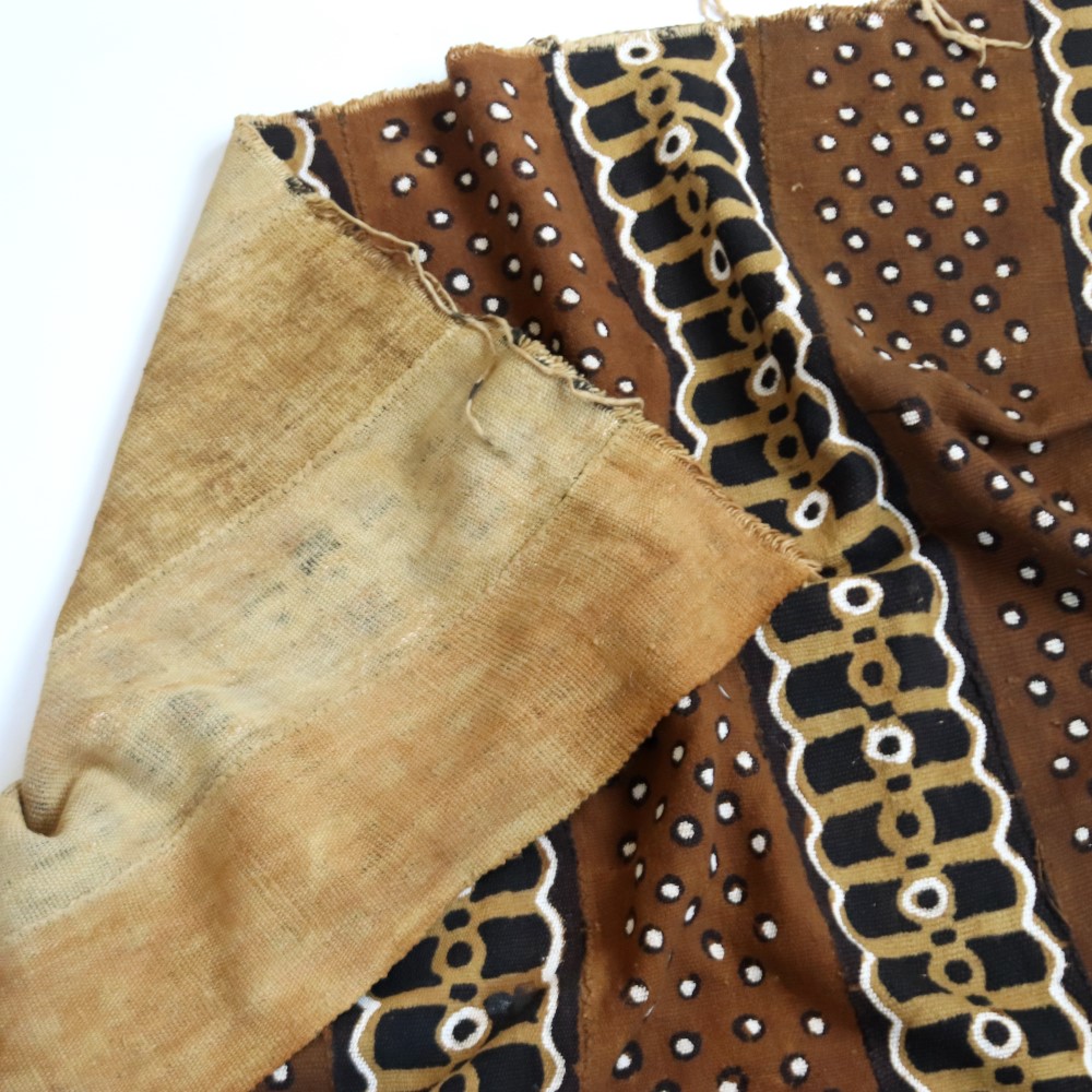 伝統的な方法で何度も行程を重ね染められたマリの泥染布です。アフリカ伝統のプリミティブなデザインです。ソファカバー、テーブルクロス、タペストリーなど、インテリアクロスとして、広くお使いになれます。天然染料のため色落ちがあります。洗濯の際にはドライクリーニングか水洗いをおすすめします。一点物