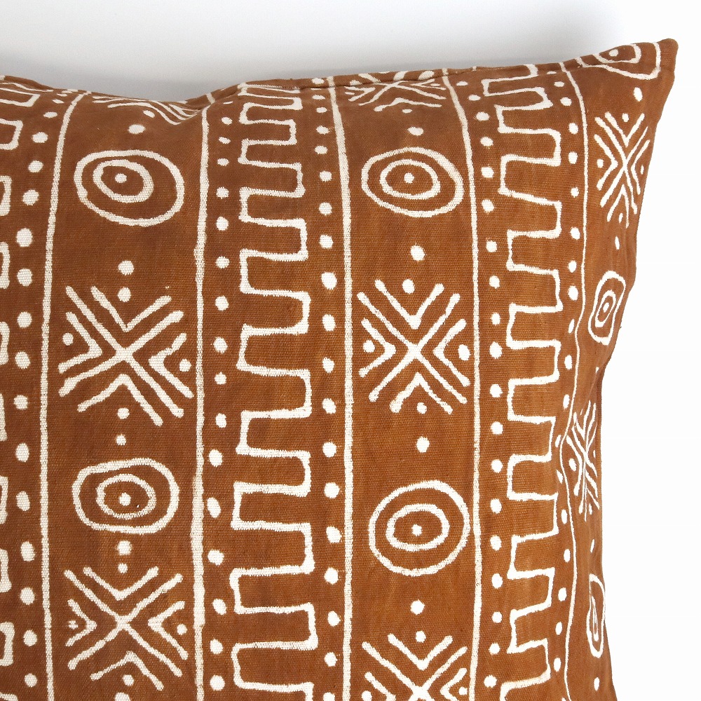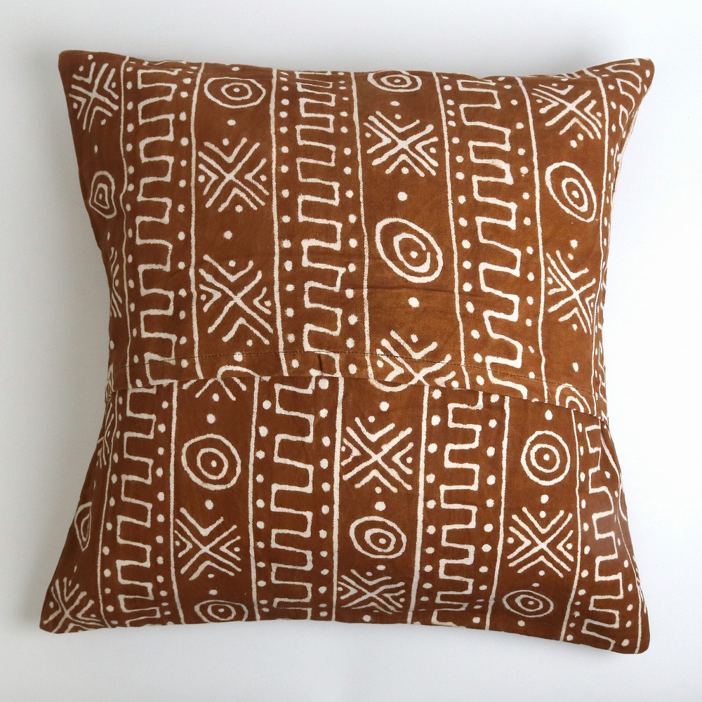 マリの泥染めで作られた50x50cm、大き目クッションカバーです。オーガニックなテイストのカラーと柄をご用意しました。天然染料で染め上げられた泥染めならではの優しい色合いが、お部屋によくとけこみます。こちらはクッションカバーのみの販売です。クッション本体は付属ではありませんのでご注意ください。