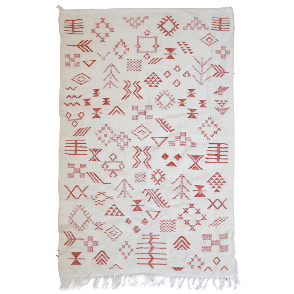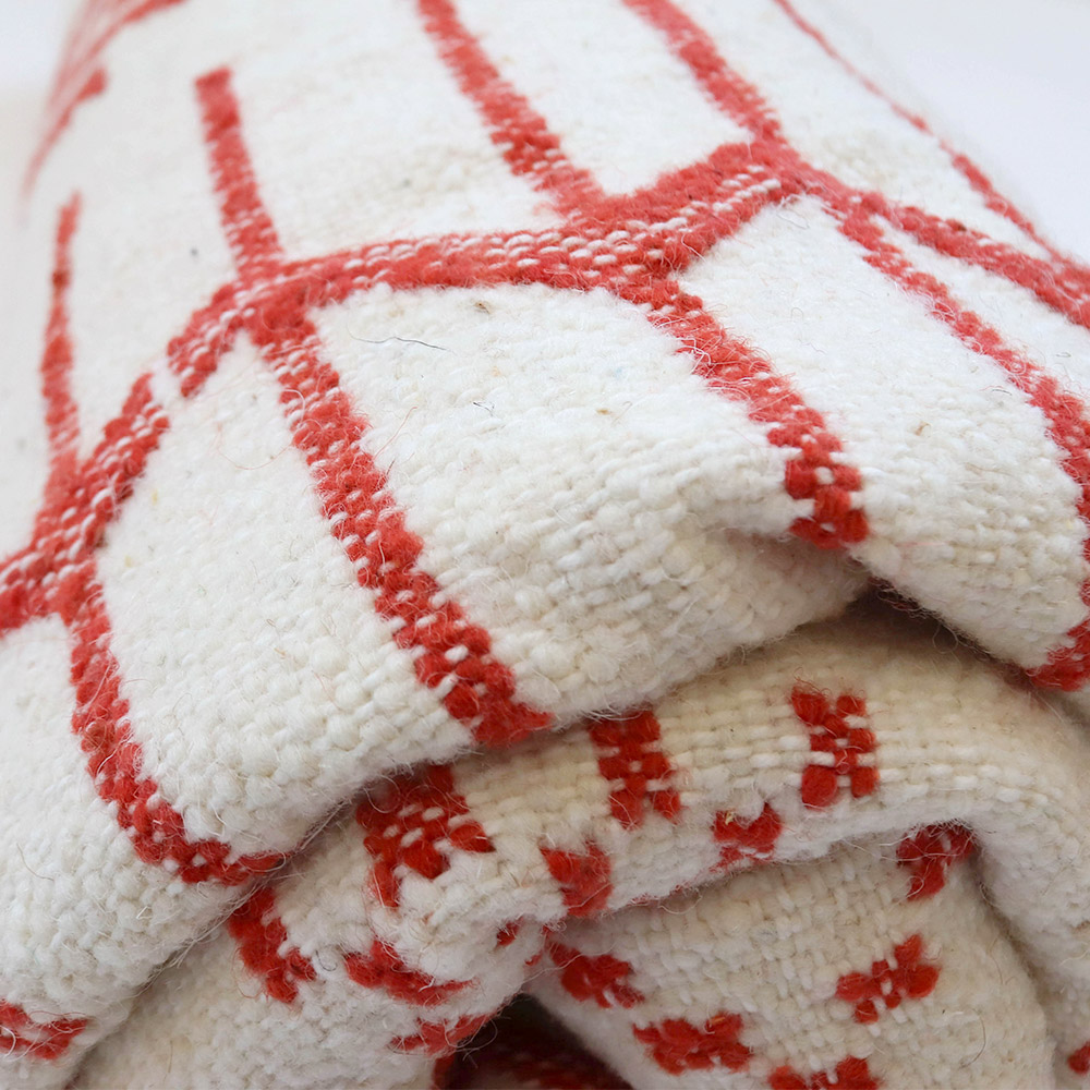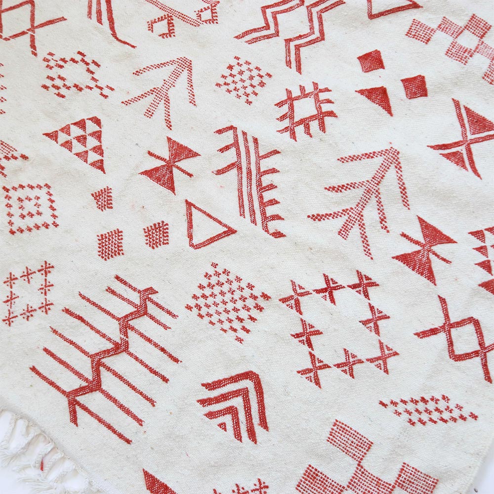 チュニジアのキリムは、縦糸にコットン糸を使用し、ダイヤ形のモチーフRegma(複数形regam)と呼ばれ柄で繰り返し織り込まれます。