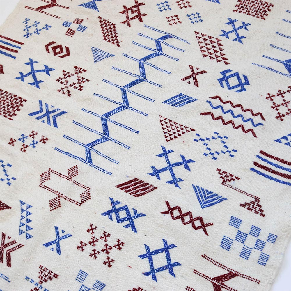 チュニジアのキリムは、縦糸にコットン糸を使用し、ダイヤ形のモチーフRegma(複数形regam)と呼ばれ柄で繰り返し織り込まれます。