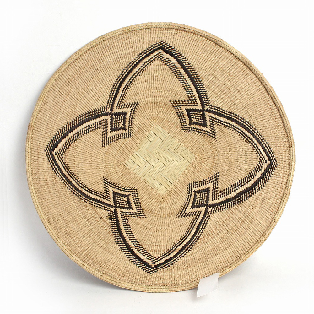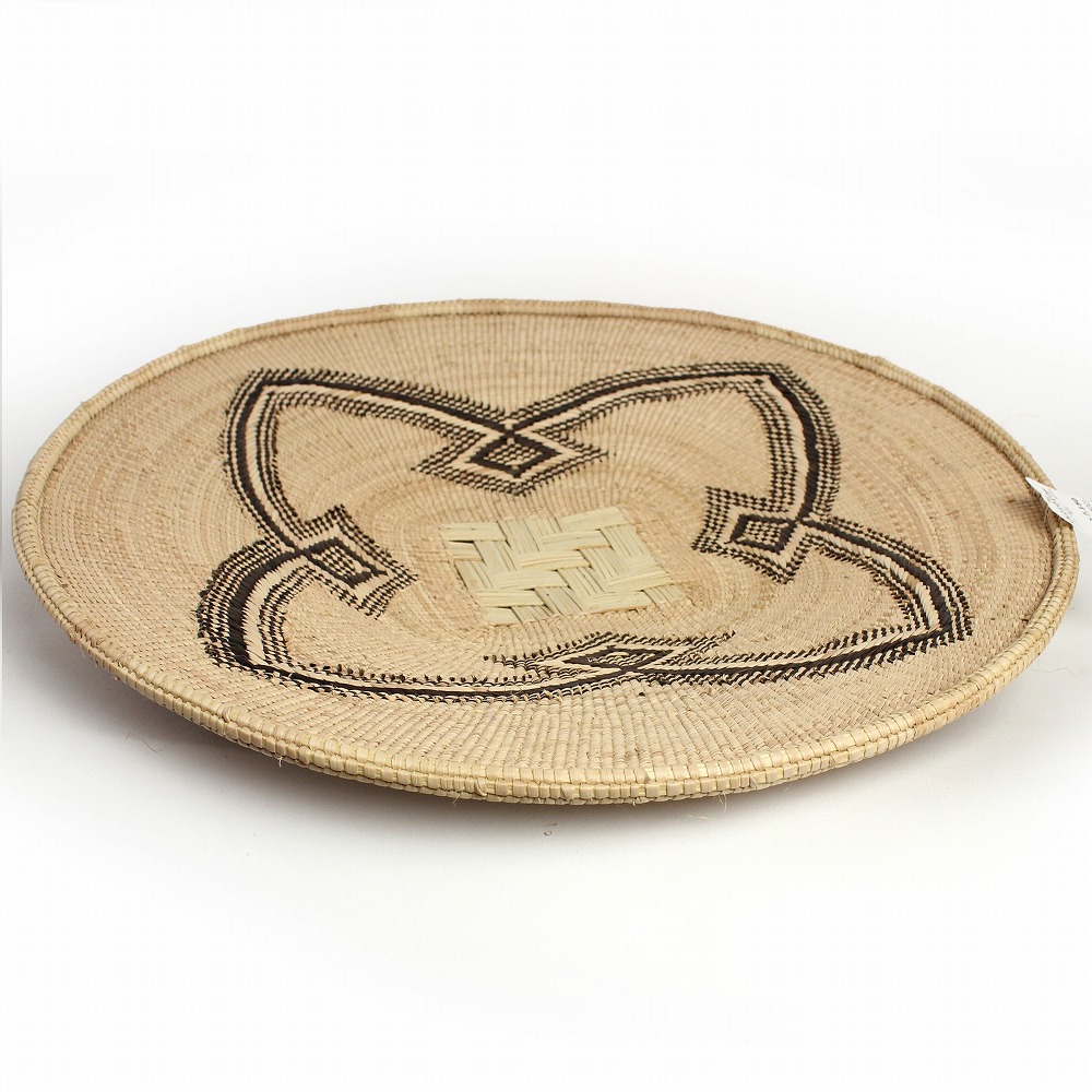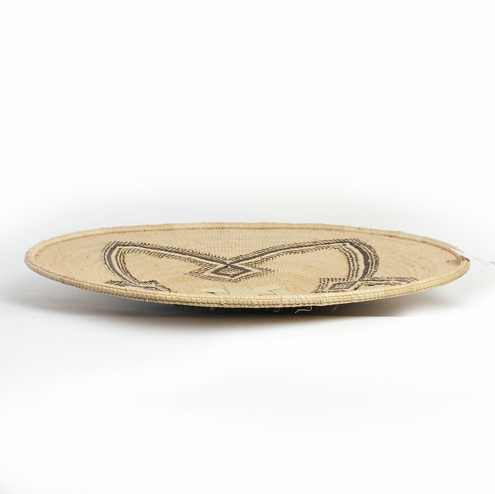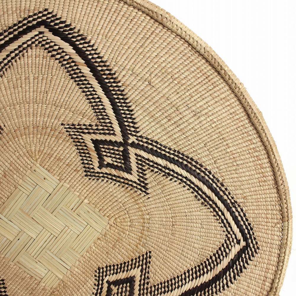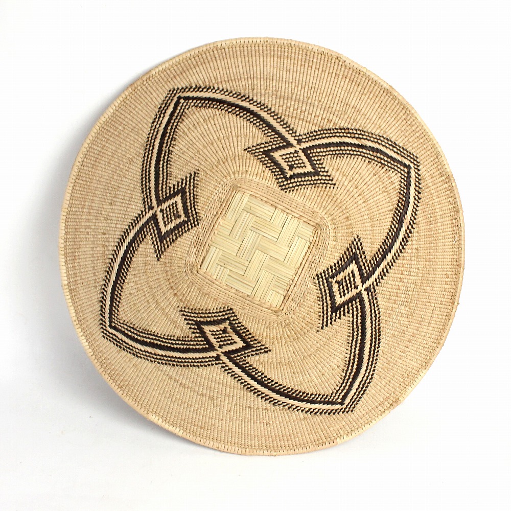 トンガバスケットは、ジンバブエ西部のビンガ地方で、 トンガ人の女性たちによってイララ(椰子の葉)を手編みして作られています。もとは穀物を運んだり選別するために使用されていました。 ストライプや蜘蛛の巣模様、稲妻模様などの伝統的なデザインと、四角い底の土台が特徴的。 放射状の葛に、ナチュラルなイララの葉と、樹皮や根、泥で染色を繰り返したブラウンの葉の二色が編み込まれ、二つとして同じ柄がないというの美しいカゴを創り出します。 また壺に似せたカラバッシュカゴをはじめ、様々なフォルムのカゴを器用に編み上げます。 これらは干ばつと貧困に見舞われやすい地域に住むトンガの人々にとって、貴重な現金収入となっています。 ひとつひとつ表情が異なるバスケットは、インテリアアイテムとして近年注目されています。