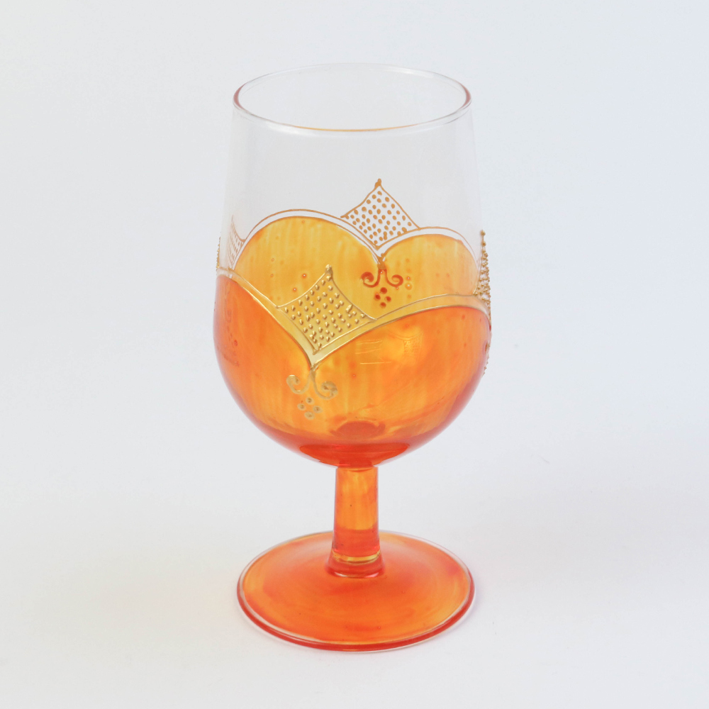モロッコ手描きカクテルグラス ゴールド オレンジ