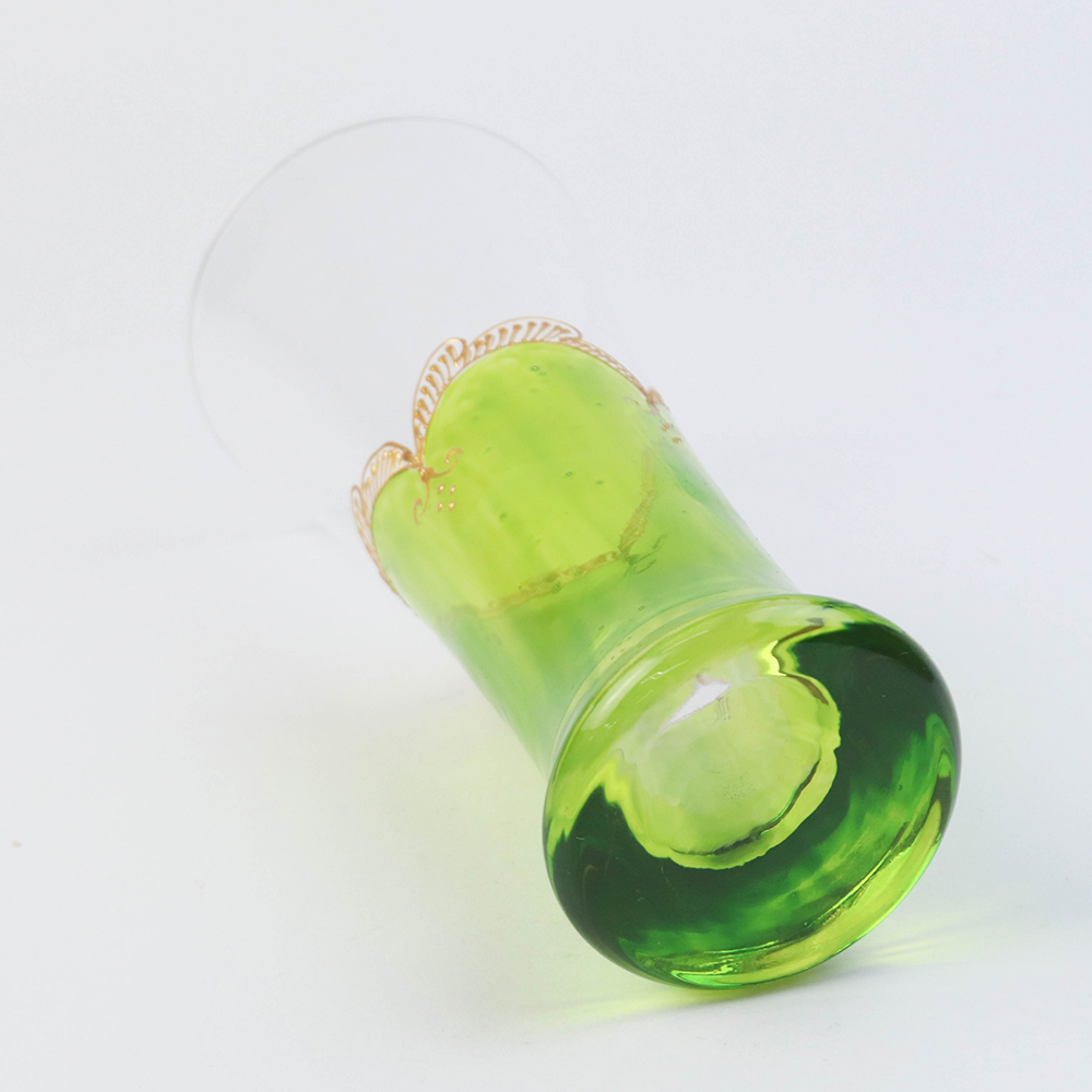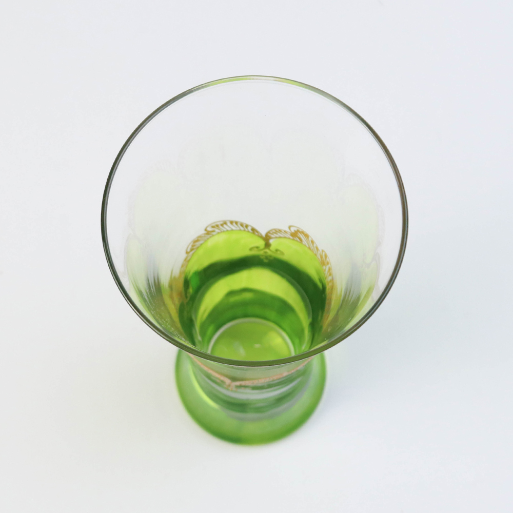 モロッコ手描きカクテルグラス ゴールド 緑