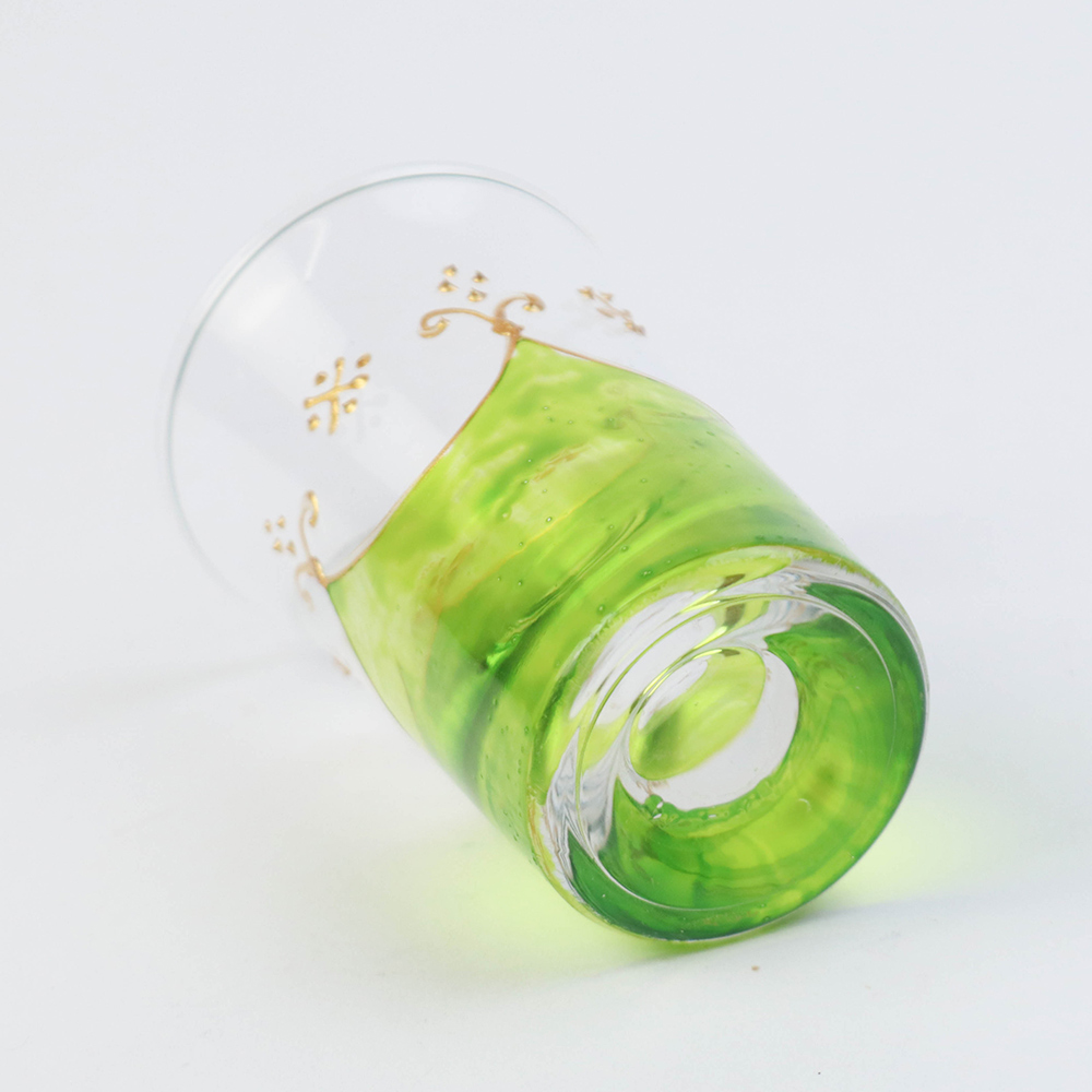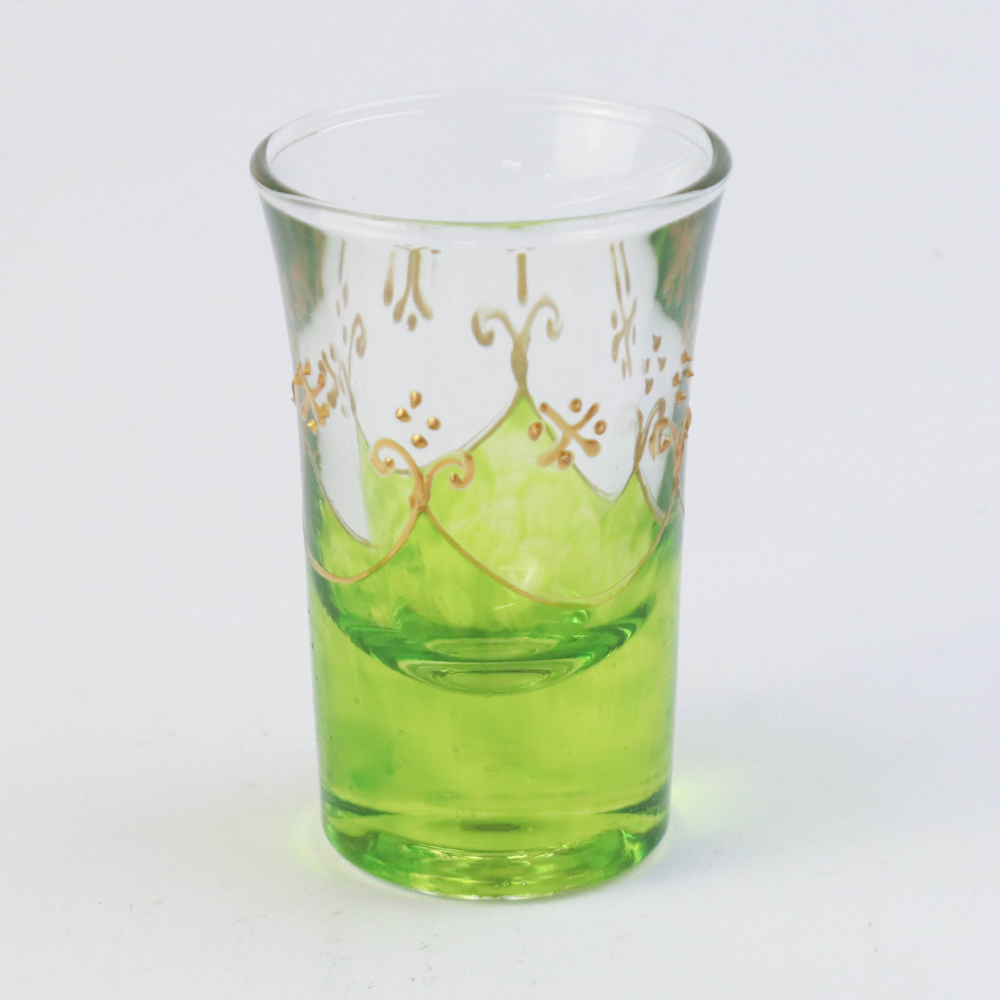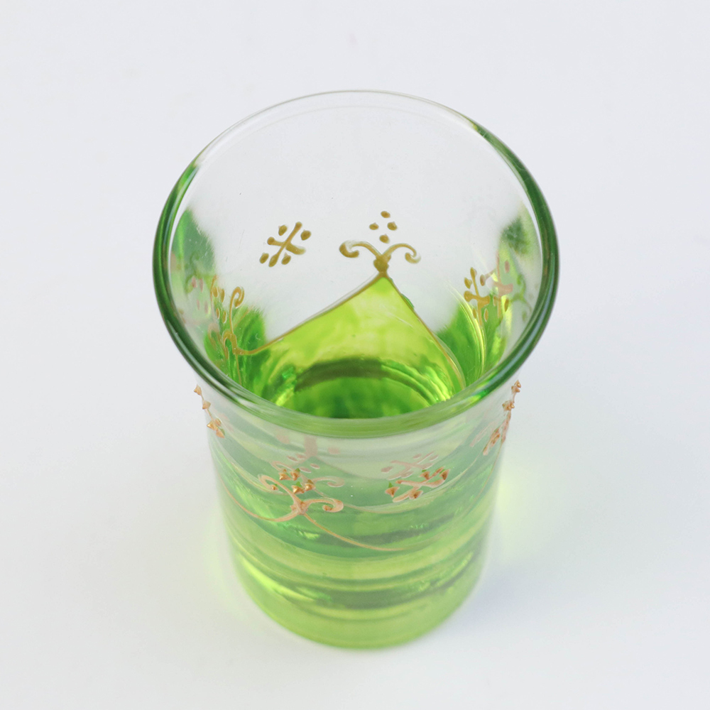 モロッコ手描きショットグラス ゴールド 緑