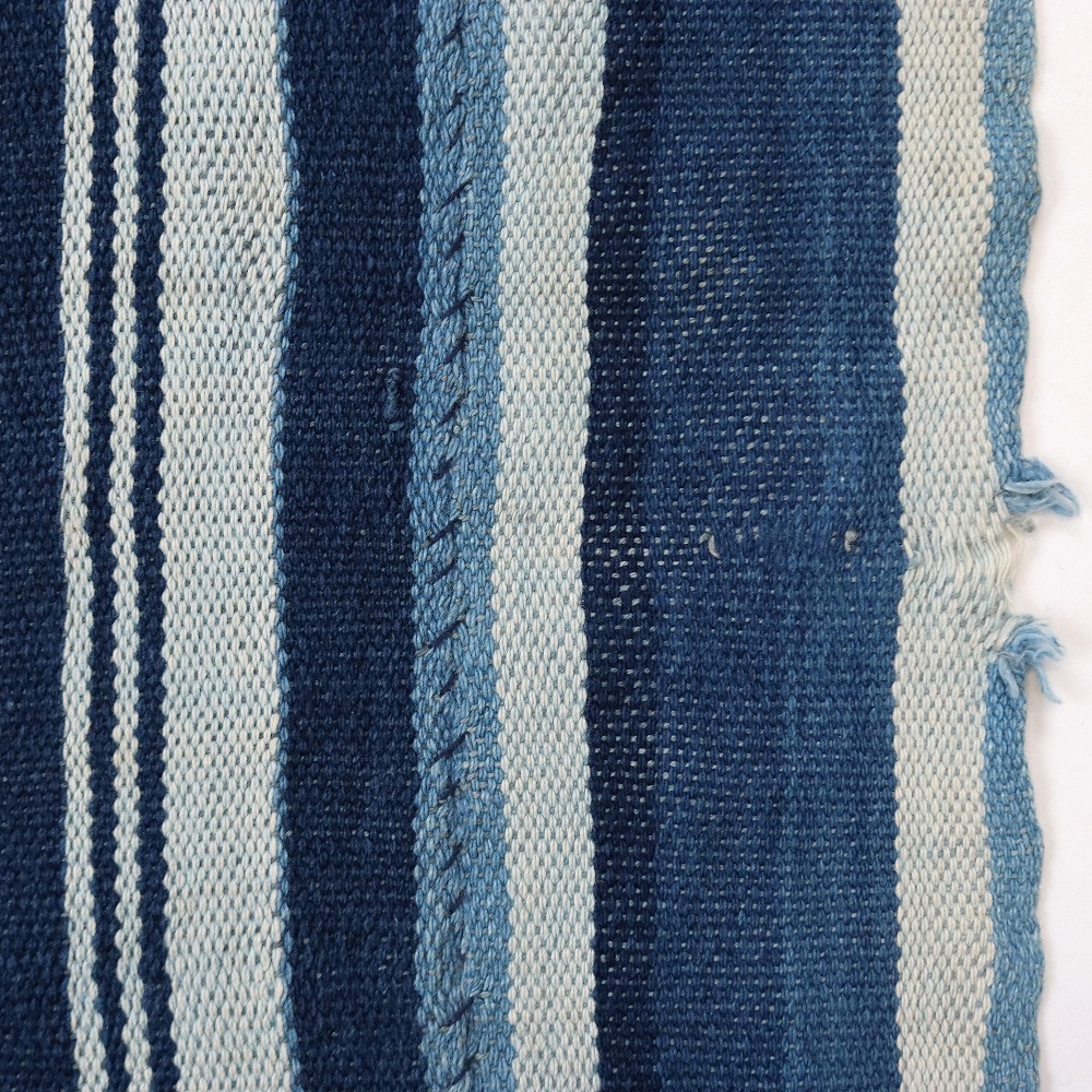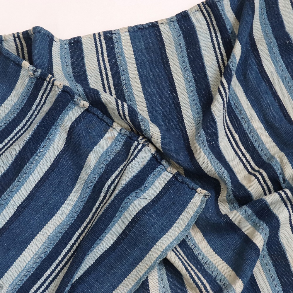 西アフリカ、マリのドゴンの人々に伝わる貴重な藍染古布です。藍染に染め上げた糸をストライプ柄に細長く織りあげ、さらにはぎ合わせ大きな一枚布に仕立てます。現地の人は、腰巻布として使います。こちらの商品は、長い年月を経た藍染の古布です。多少汚れ・擦り切れていたり、はぎ合わせ部分にほつれなどございますが、大変味わい深いアンティーク布ということで、ご注文の際は予めご了承ください。