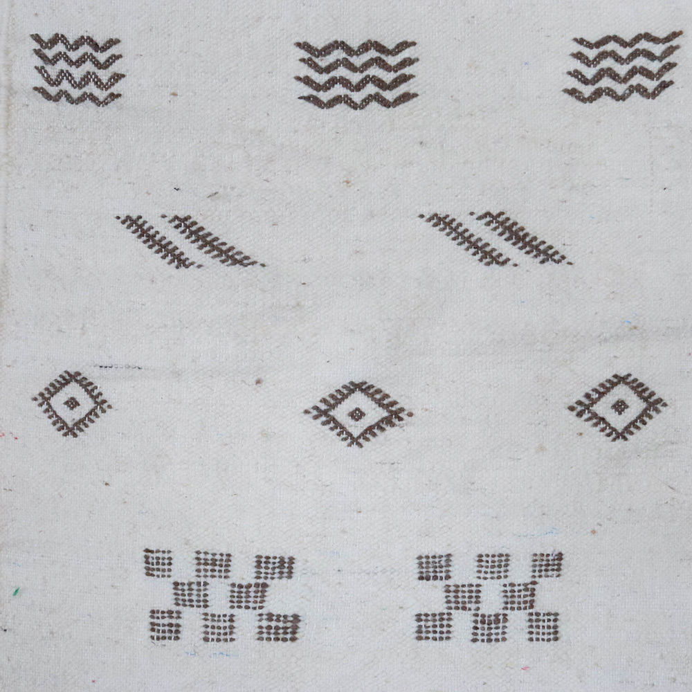 チュニジアのキリムは、縦糸にコットン糸を使用し、ダイヤ形のモチーフRegma(複数形regam)と呼ばれ柄で繰り返し織り込まれます。
