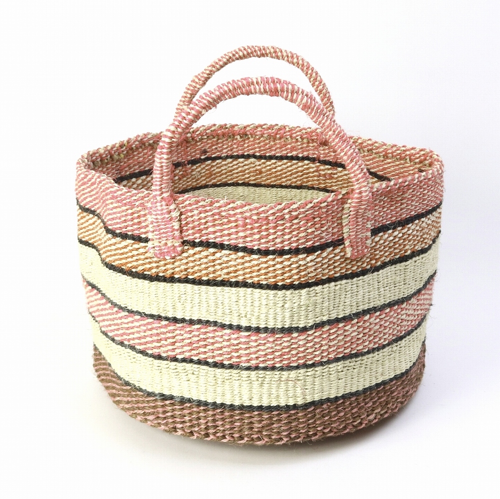 サイザルとはリュウゼツランの一種で、その繊維は歴史的に広く使われていた繊維である麻にちなんでサイザル麻と呼ばれています。ケニアのキクユ人やカンバ人の伝統技術により サイザルで編んだバスケット(=キオンド)は穀物の運搬や保存にケニアでは使われていました。かごを編む技術は母から娘へと受け継がれ、ケニアの小さな農村の女性を中心にひとつひとつ手作りで編み上げています。現在ではサイザルバッグを編むことがケニアの村の重要な現金収入源となり、各家庭の子どもたちの学費となり生活費の足しとなっています。