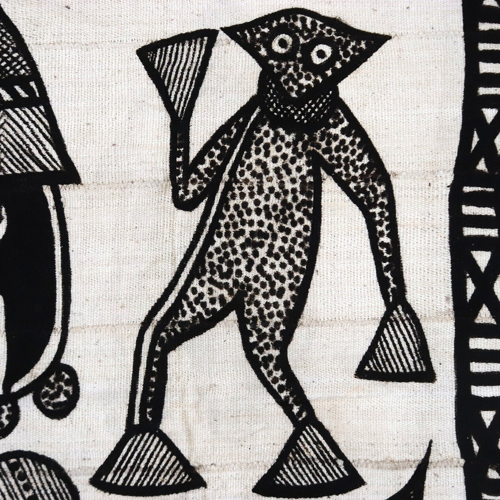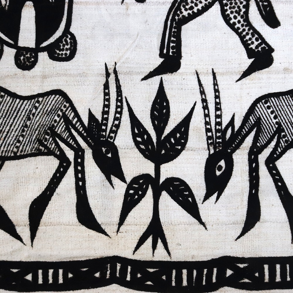 独特のタッチで描かれる独創的なモチーフが印象的なこの布は、もろこしなどの現地の植物を煮出し発酵させた染料で描かれています。 動物や伝説上の生き物や精霊また、生活から着想したものなどそのモチーフはみなコロゴの文化と神話に根差したものです。