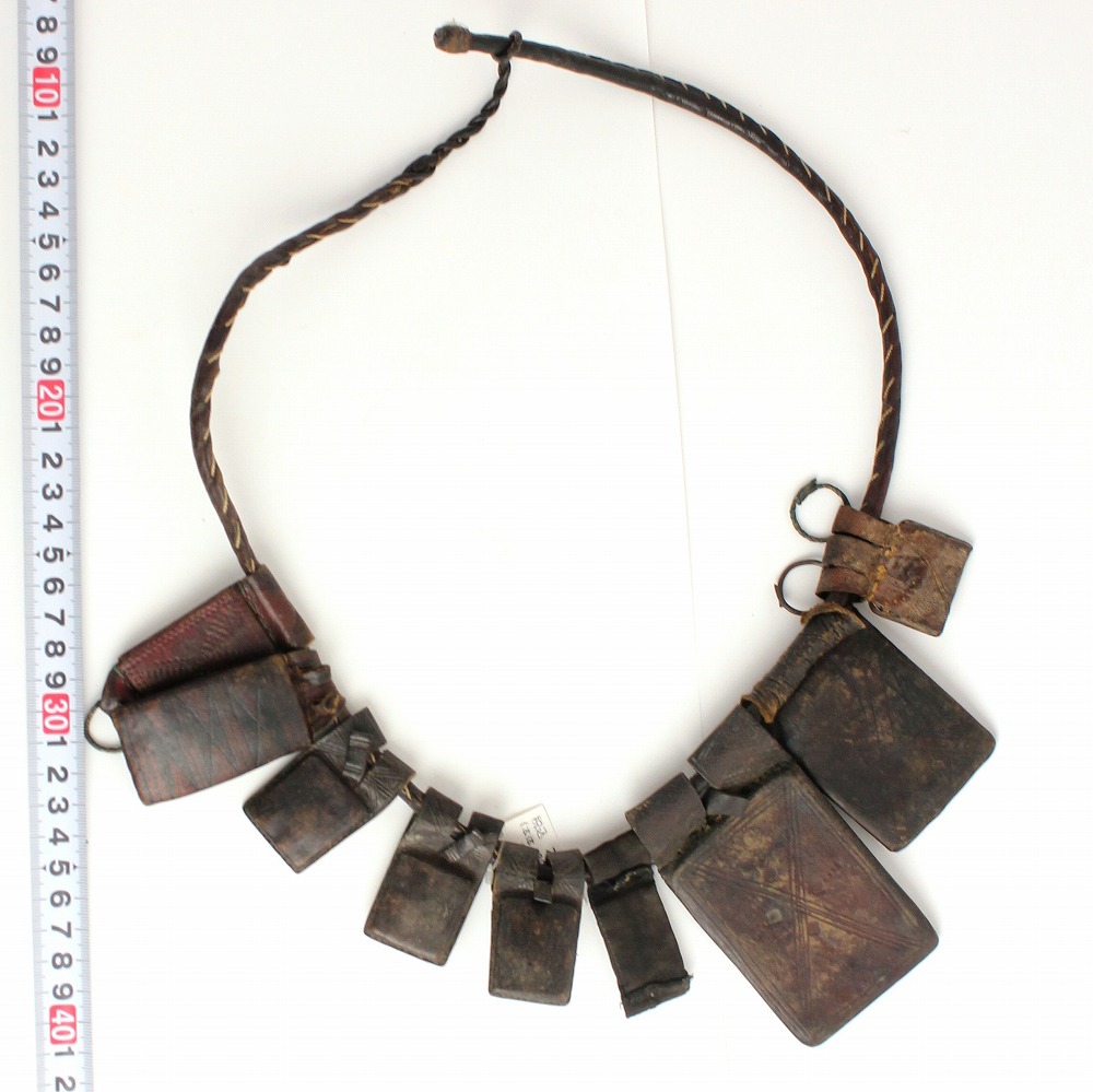 フラニの人々のアンティークアクセサリー、グリグリです。グリグリとはお守りや魔よけのこと。西アフリカのトゥレグ・フラニ・ウォダベなどの交易や遊牧など移動生活を生業とする人々は、昔からお守りを身に着ける習慣があります。こちらはフラニの人々が身に着けていたお守りです。