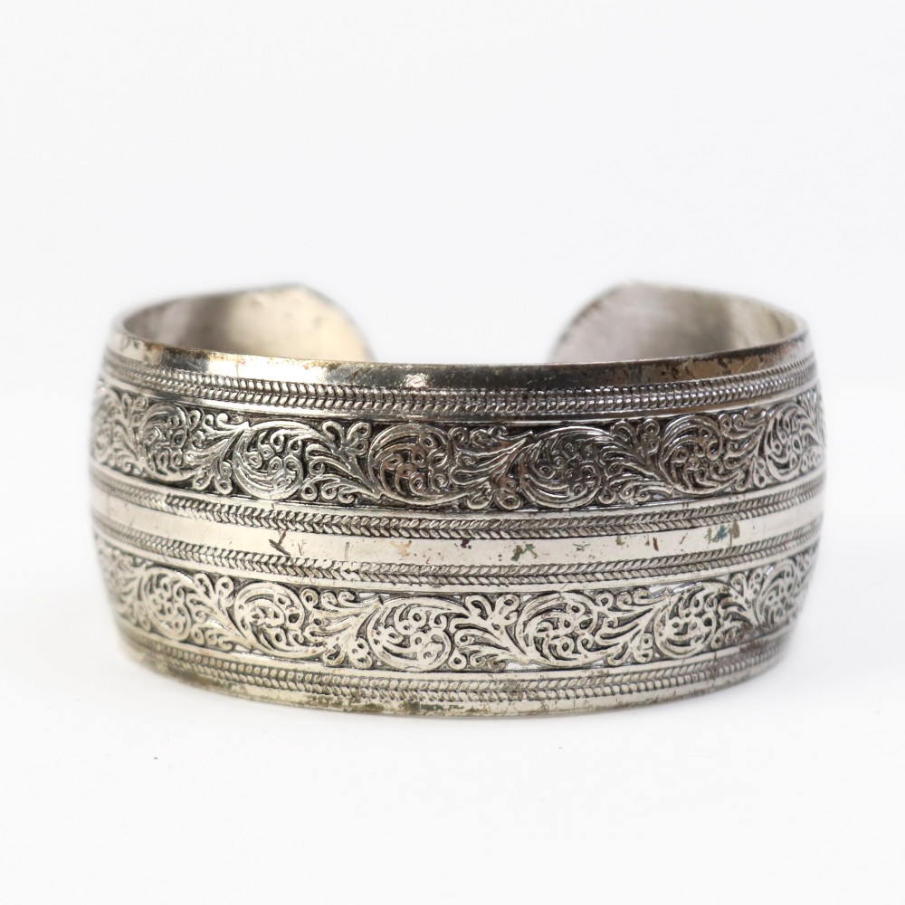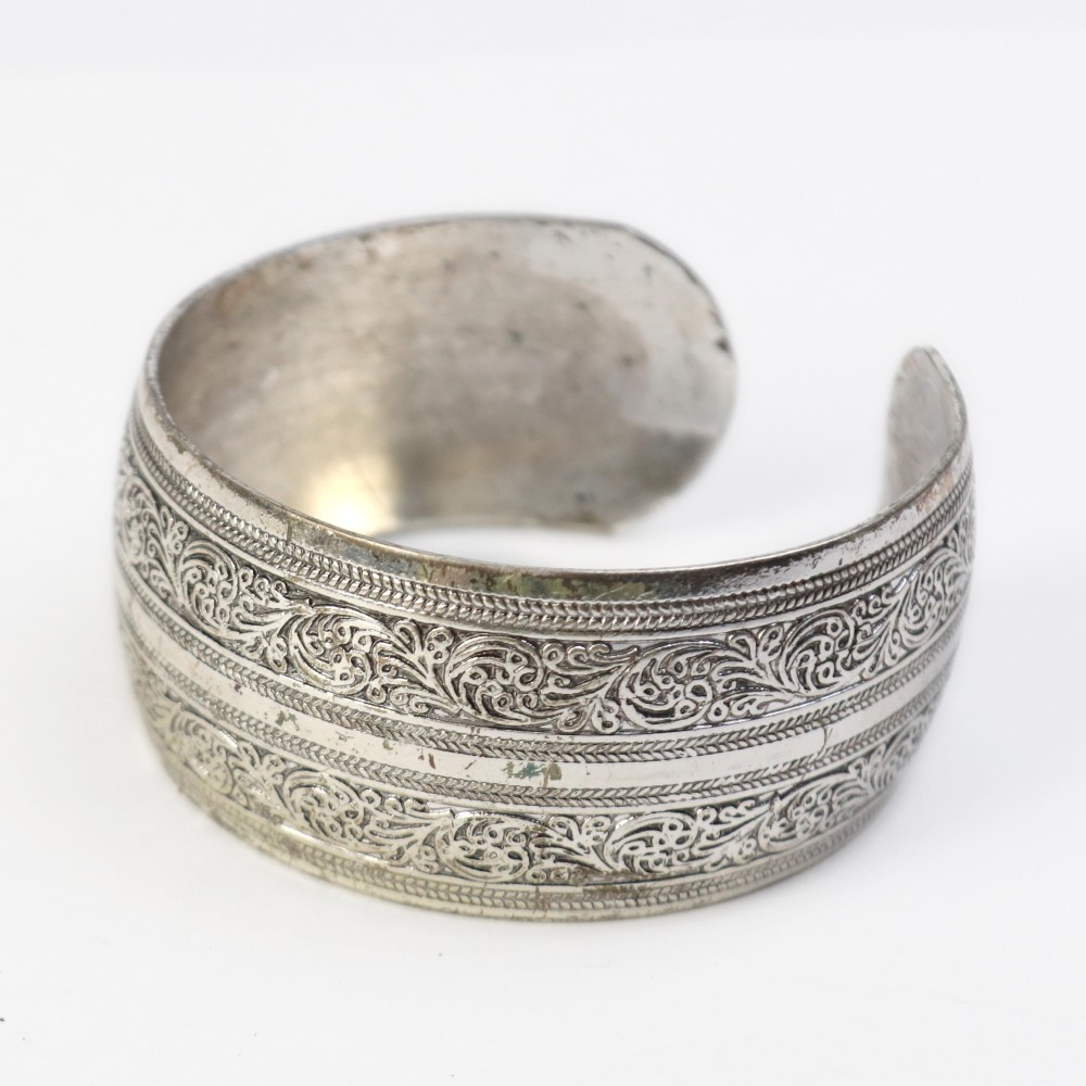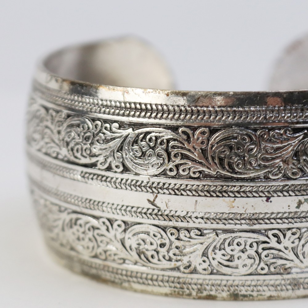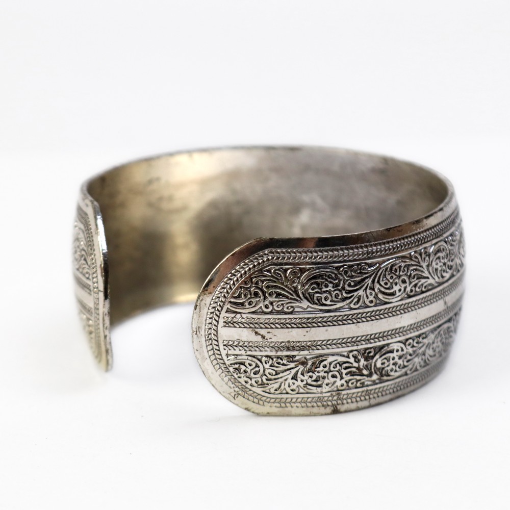 古くから北アフリカに住む「自由の人」ベルベルの金属バングルです。彼らの間に何代も伝わる柄が細かく彫り込まれた逸品です。