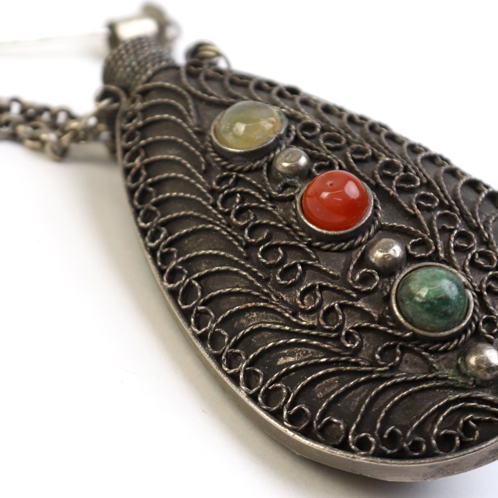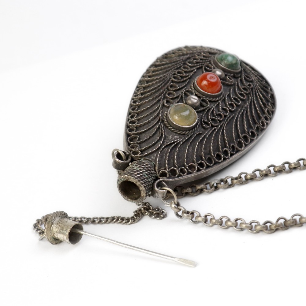 古くから北アフリカに住む「自由の人」ベルベル人がアイメイクに使用する化粧品を入れる伝統的な容器です。彼らの間に何代も伝わる柄が細かく彫り込まれた逸品です。