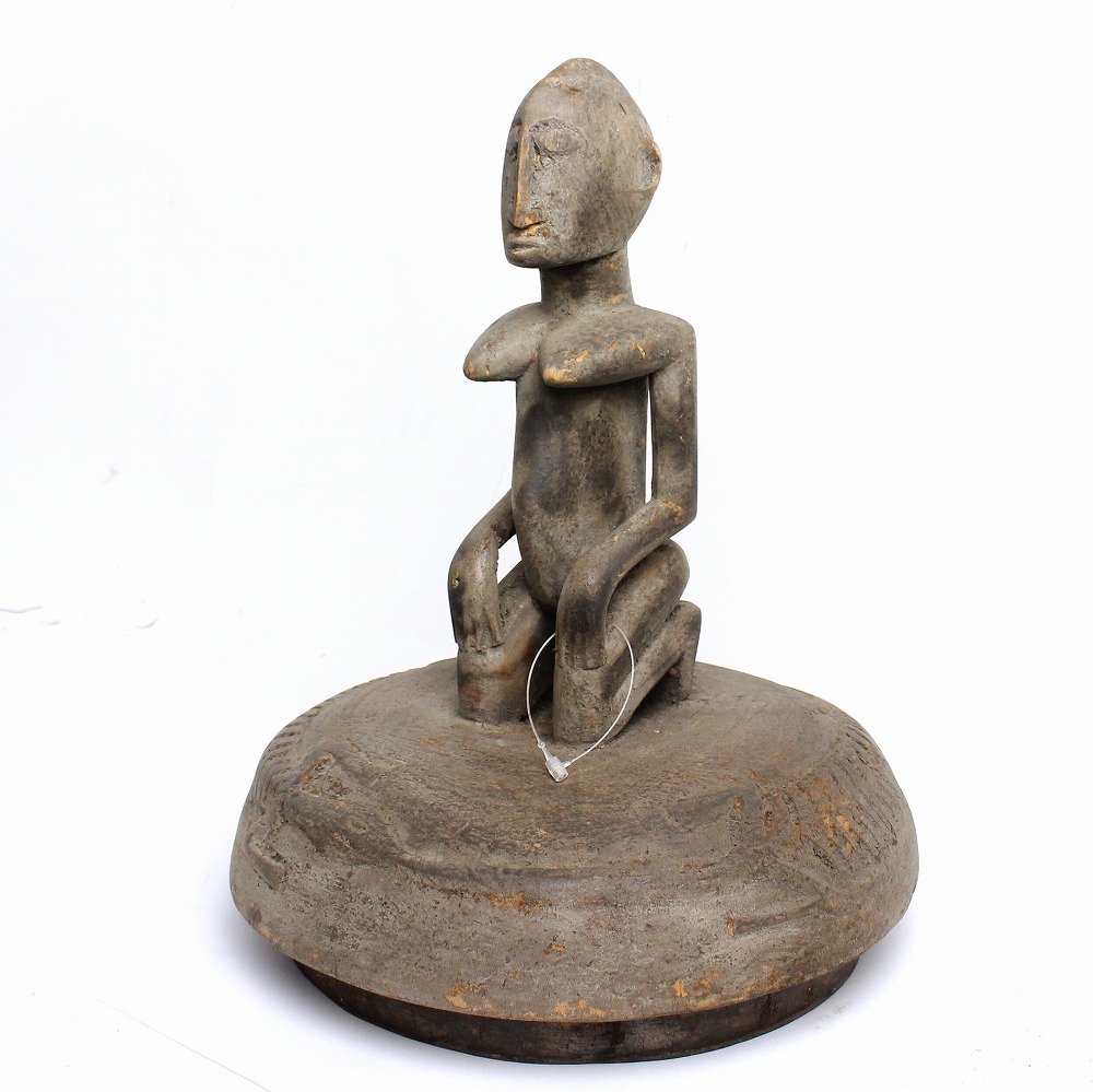 硬質な木材の質感を活かした力強いファルムの彫像です。アフリカのマリ共和国に暮らすドゴン人の彫像は、アフリカ美術を代表するもので、その抽象的で様式化された造形と深い宗教的意味合いで知られています。