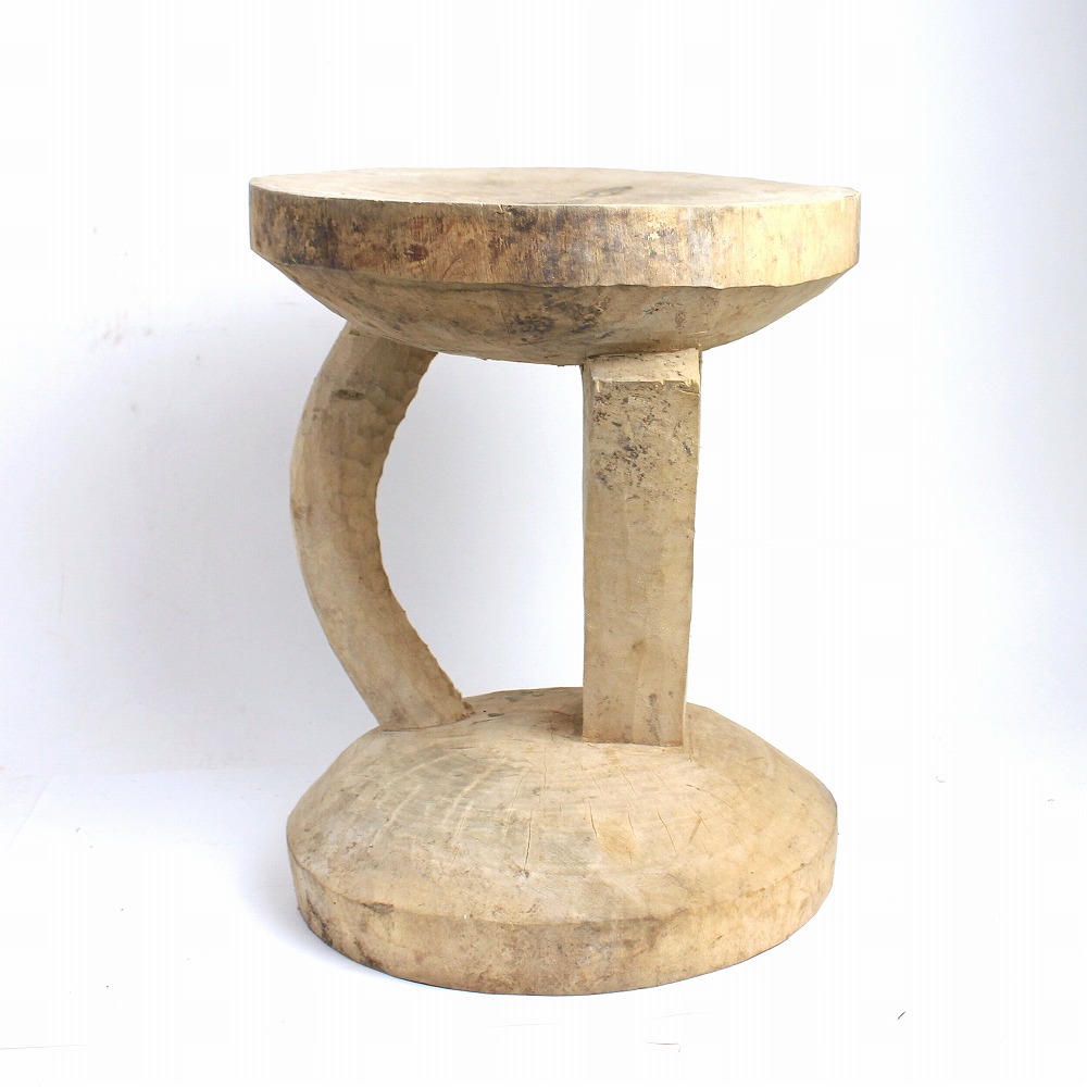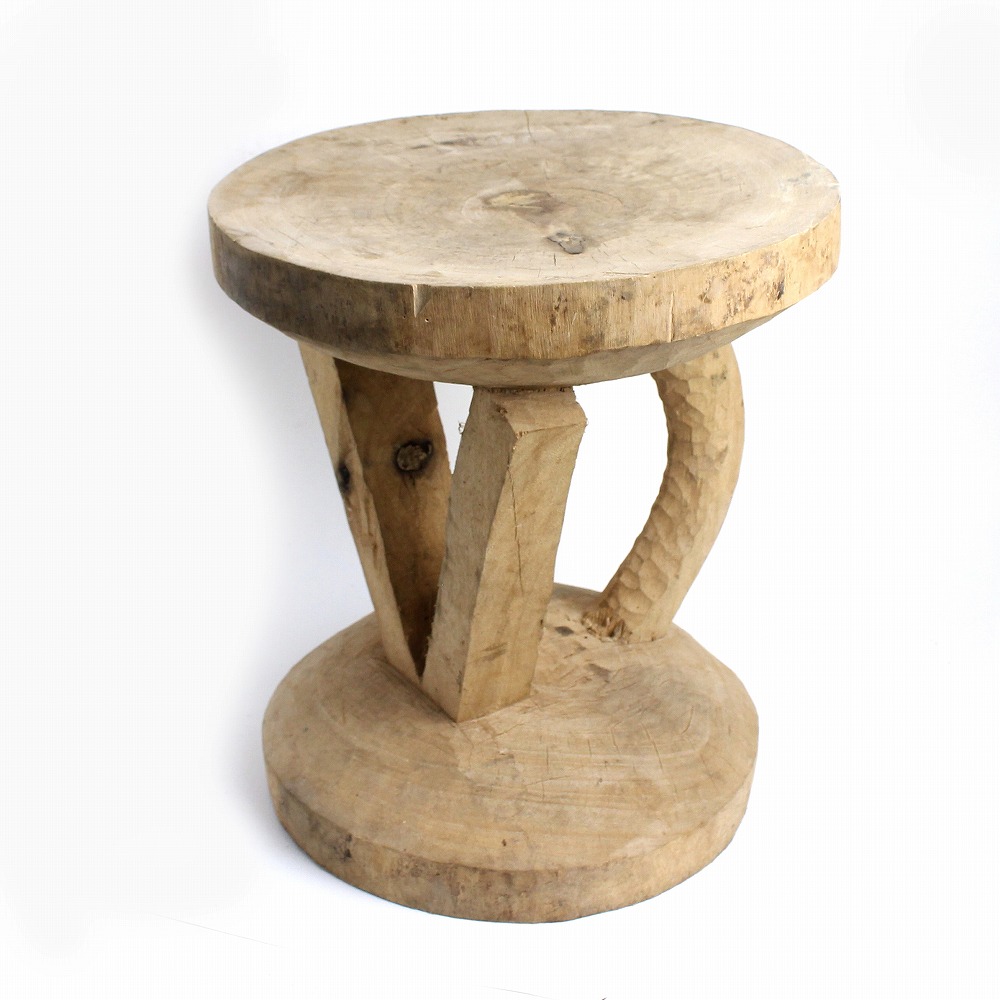 プリミティブな力強いフォルム、一本の木をくり抜いた質感や木目の美しさが際立つジンバブエトンガスツールです。現地では腰掛以外にも作業台としても使うそうです。シンプルな中にも木の質感が美しく、和の空間にもよく合います。アフリカンモダンなプリミティブ家具でお部屋のコーディネートをお楽しみください。