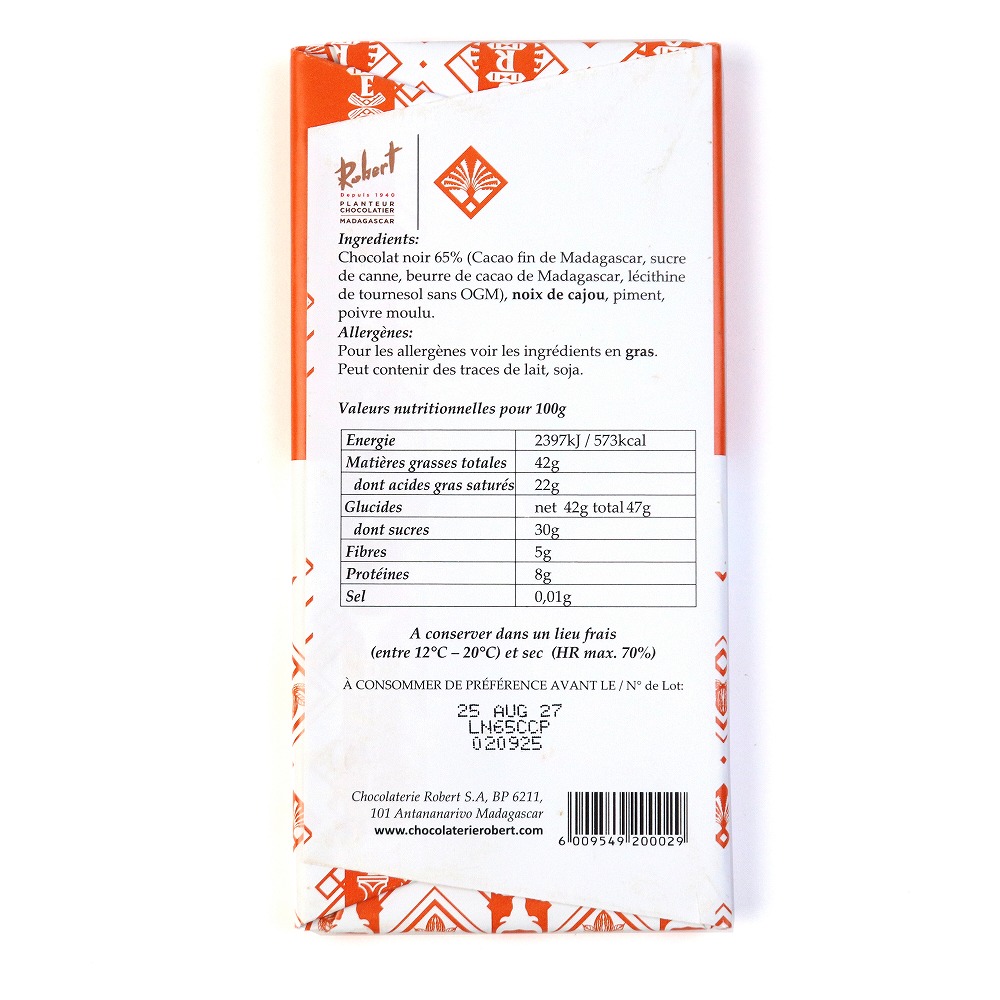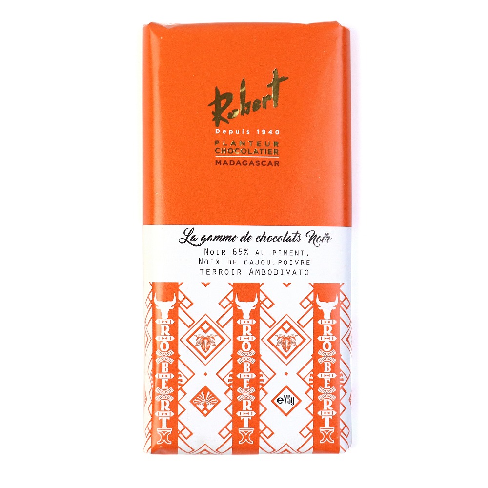 ロベール ダークチョコレート65%Ambodivato/アンボディヴァト地区カシューナッツ&チリペッパー
