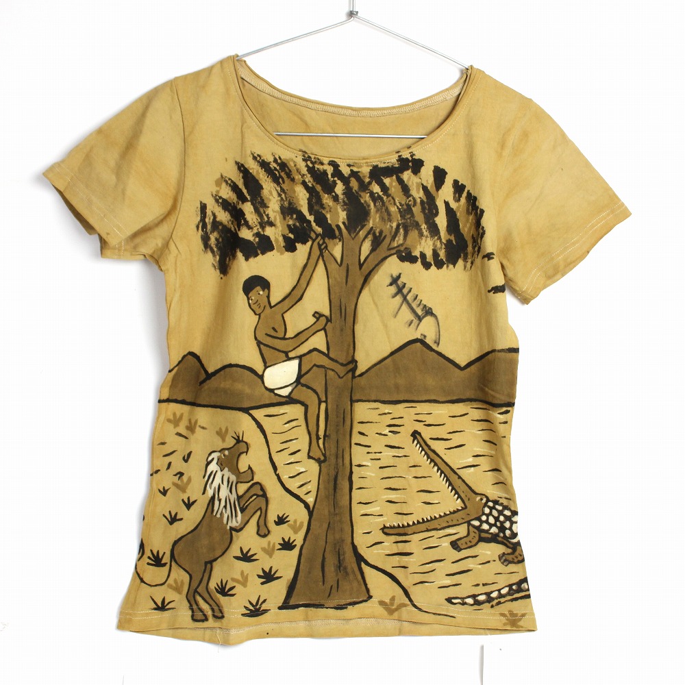 ●泥染めのため、通常衣料より比較的強い色落ちがあります。雨や発汗、摩擦等により脱色・色移りする事があります。はじめてご着用になる際は、染料の粉などが付着している場合がありますので軽く水洗いしてからご着用いただくことをお勧めいたします。●洗濯の際、色移り色落ち・穴あきの恐れがございます。蛍光剤・漂白剤の入っていない中性洗剤をご利用の上、手洗い、又はネットに入れて洗濯機手洗いコースにてお願いします。●洗濯で多少縮むことがあります。すすぎ・脱水は軽めにし、ぬれたまま放置せず、すぐに形を整え陰干し下さい。(日焼け・色あせ防止) ●乾燥機の使用は避けてください。● アーティストが手描きのため同柄であっても1点ごとに若干異なります。 染めムラ汚れが有ります。 ● 天然素材と伝統的技法の手作り品のため、お手入れには手間もかかってしまいますが他にはないオリジナルなTシャツを楽しんでいただければ幸いです。