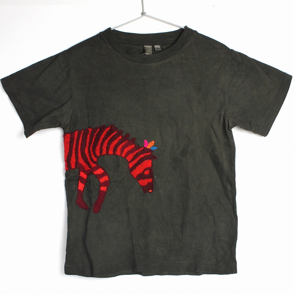 泥染 刺繍Tシャツ半袖S 5 シマウマ 01 一点物
