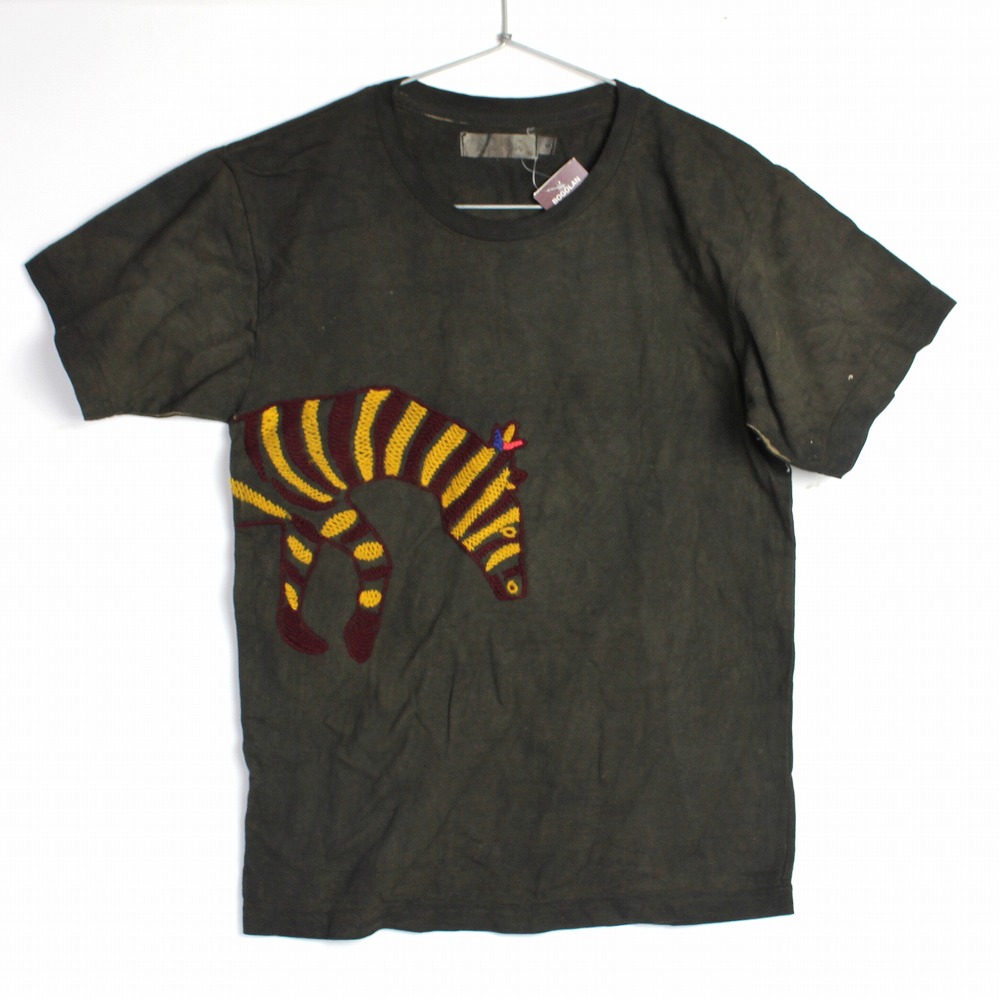 泥染 刺繍Tシャツ半袖S 5 シマウマ 02 一点物