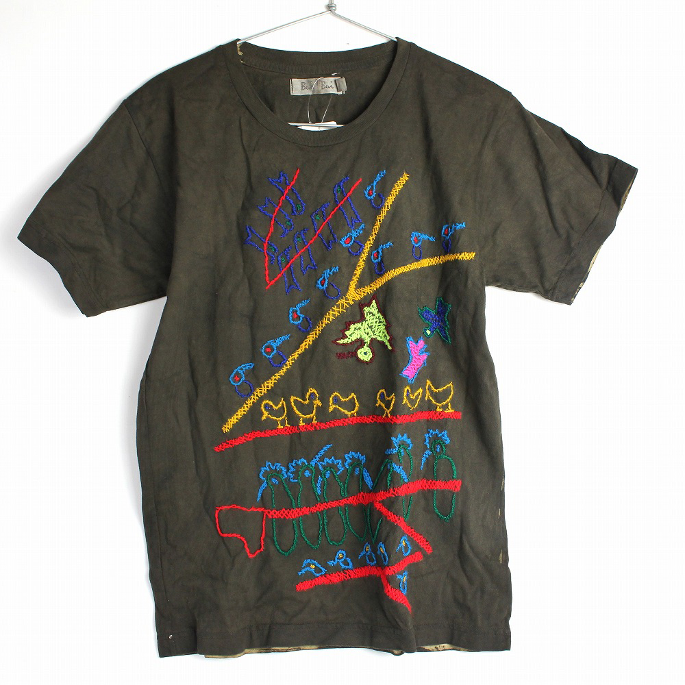 マリ泥染め工房が手がけたオリジナル刺繍Tシャツです。泥染め工房で天然染料を使い手間隙かけ染め上げたTシャツに、カラフルな刺繍を施しました。お気に入りの一枚をどうぞ!この商品は摩擦、汗や雨などによる水濡れによって色落ち、色移りの恐れがあります。白色や淡色のものと組み合わせる際は、製品のお取り扱いに十分にご注意ください。