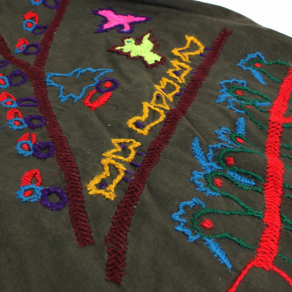 マリ泥染め工房が手がけたオリジナル刺繍Tシャツです。泥染め工房で天然染料を使い手間隙かけ染め上げたTシャツに、カラフルな刺繍を施しました。お気に入りの一枚をどうぞ!この商品は摩擦、汗や雨などによる水濡れによって色落ち、色移りの恐れがあります。白色や淡色のものと組み合わせる際は、製品のお取り扱いに十分にご注意ください。