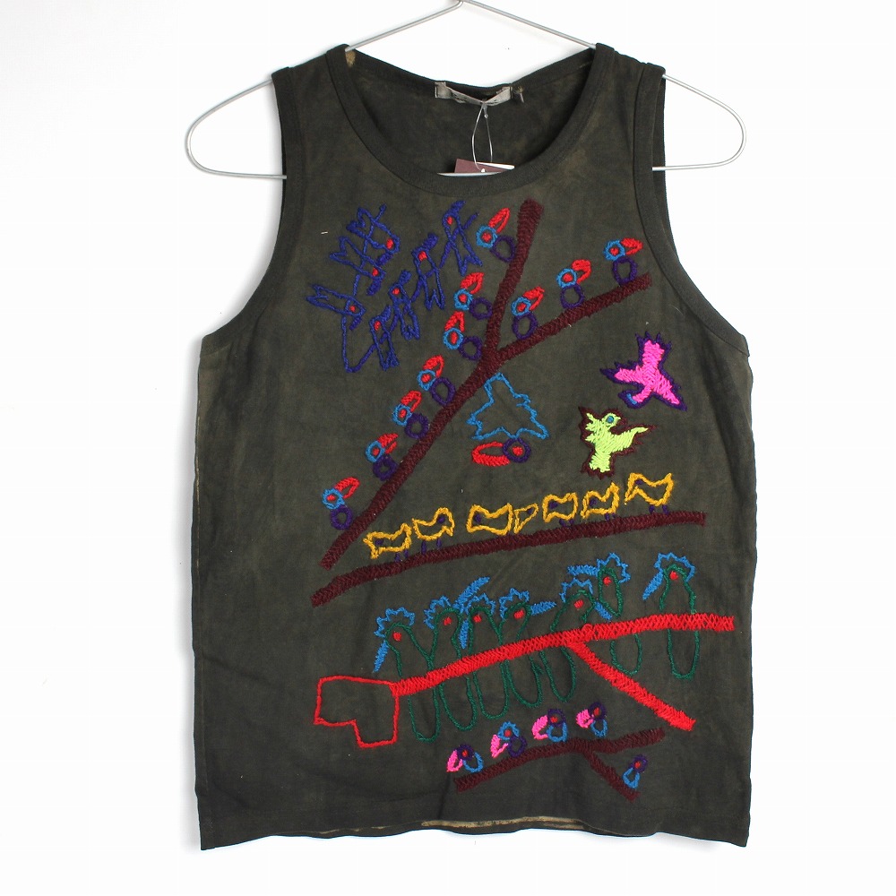 泥染 刺繍タンクトップ 8 小鳥たち 一点物