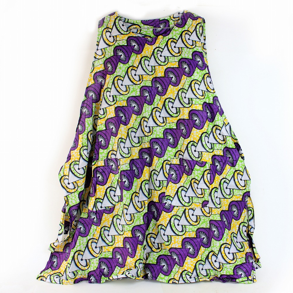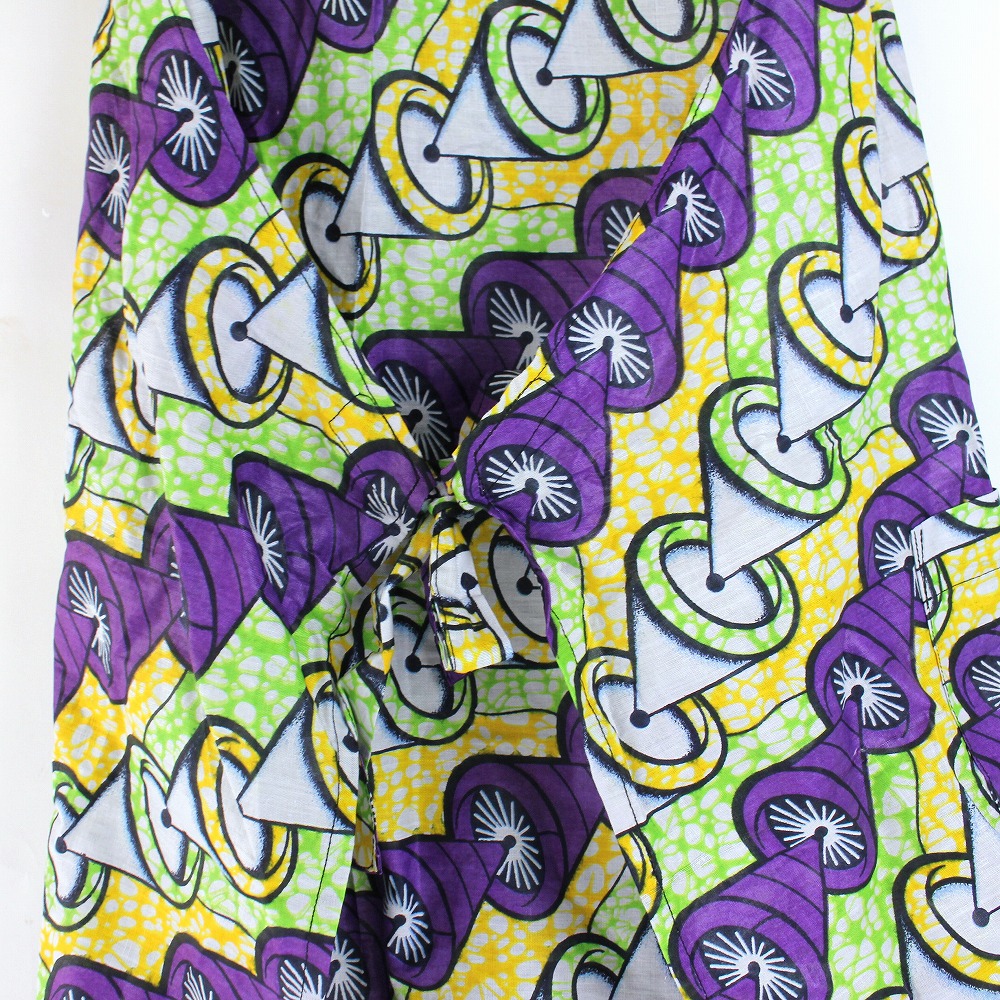 付属のリボンで色々なアレンジが楽しめます。西アフリカの田舎の村で生産者の婦人たちが、一枚一枚、心をこめて足踏みミシンで仕立て上げたオリジナル衣料です。少量のみの生産で多少の柄ずれ、ほつれなどがございますが、ファストファッションや安価な大量生産品には無いあたたかみがあります。日本の消費者にも好まれる、着やすくおしゃれなデザインを取り入れています。