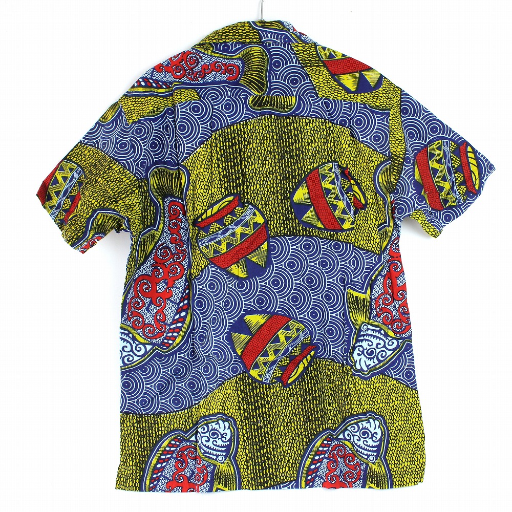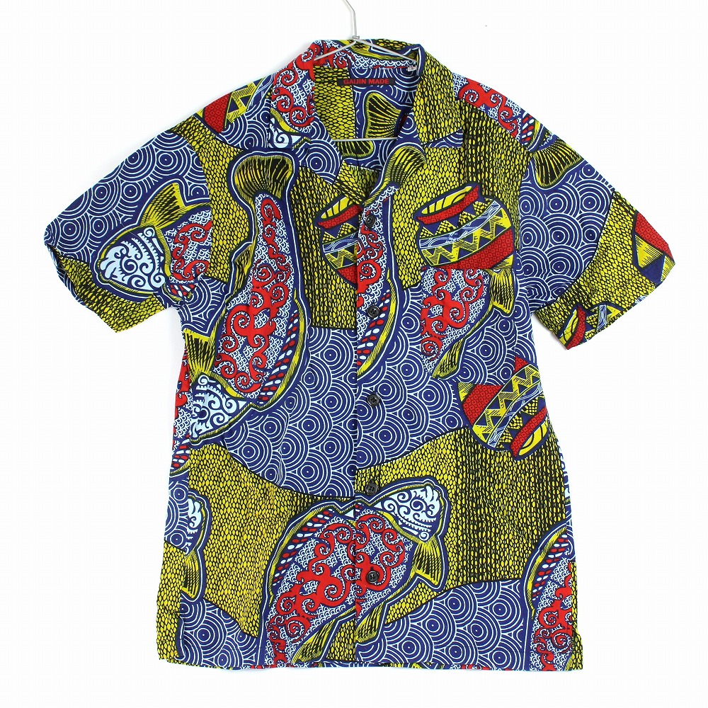 西アフリカのパーニュ布を使用し、シャツを作りました。サイズは男性サイズです。生産者たちが、一枚一枚心をこめて足踏みミシンで仕立て上げたオリジナル衣料です。少量のみの生産で多少の柄ずれ、ほつれなどがございますが、ファストファッションや安価な大量生産品には無いあたたかみがあります。日本の消費者にも好まれる、着やすくおしゃれなデザインを取り入れています。