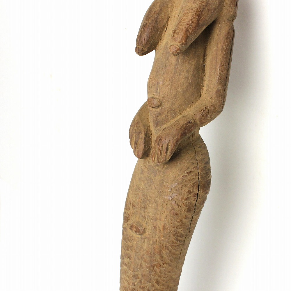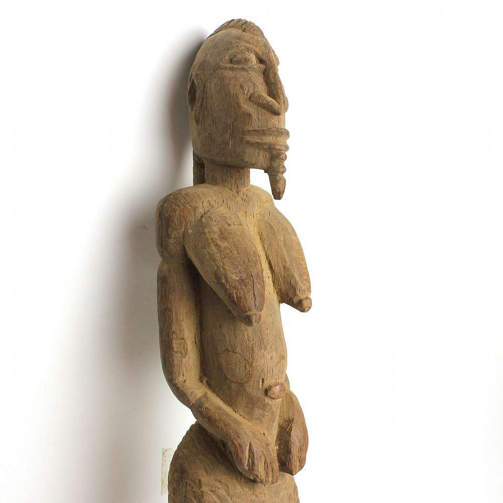 マリ共和国、ドゴン人の木製の女性像。祖霊信仰をもつドゴンの人々が祭壇などに飾るプリミティブな彫像です。ドゴン人の彫像は、アフリカ美術を代表するもので、その抽象的で様式化された造形と深い宗教的意味合いで知られています。