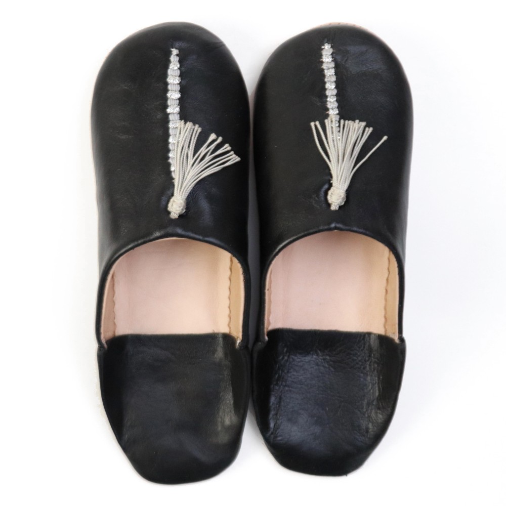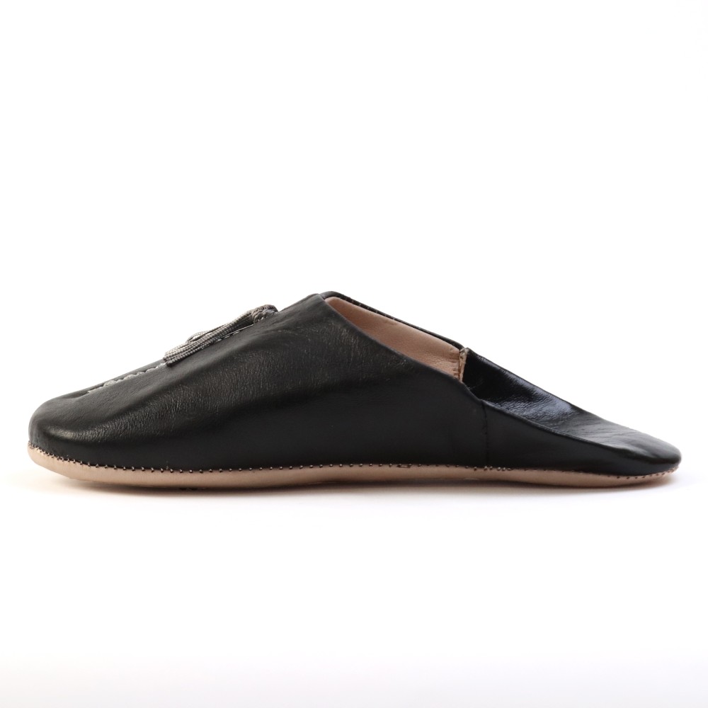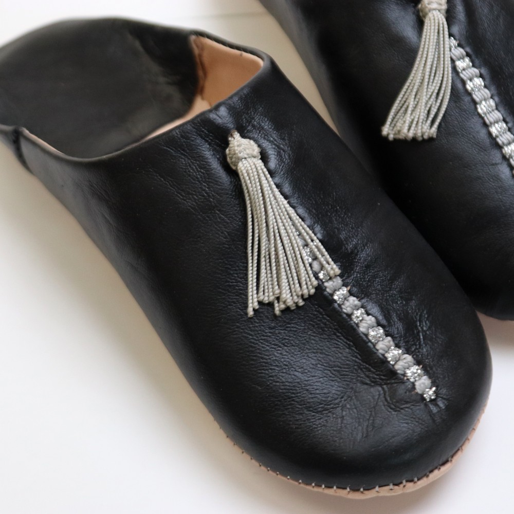 バブーシュ サブラ装飾 黒xグレーxシルバー