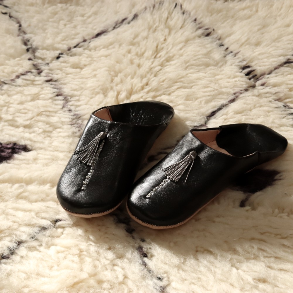 サブラの刺繍とタッセルとをアッパー部分にあしらったバブーシュです。動くたびに揺れるタッセルが、足元にちょっとしたリズムと遊びを与えてくれます。サイズは39のみ。バブーシュは昔からモロッコの人々に愛され、日々履かれている、羊革のスリッパのこと。とても柔らかい羊革でできており、履き込むごとに足の形になじみ、冬は暖かく、夏は涼しく、その履き心地は格別です。革なめしから縫製、商品の仕上げまで全てモロッコのバブーシュ職人によるハンドメイドです。