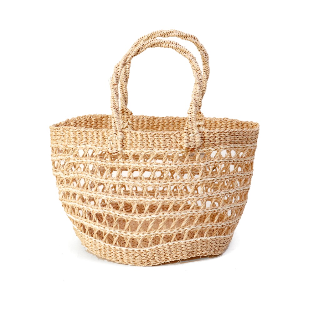 タイタバスケット 細編みサイザルバッグ 楕円底 小 ミックス 赤土染めクリームx生成 25SS一点物