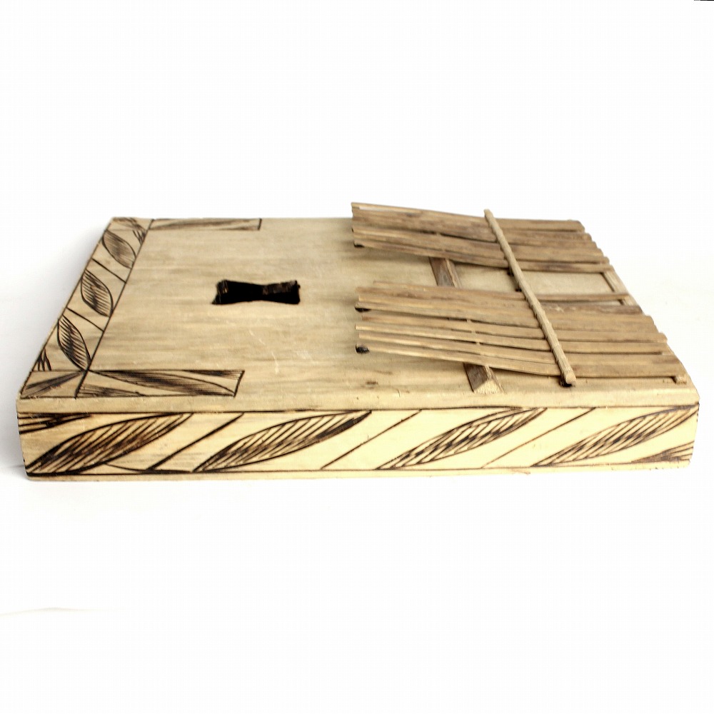 カメルーンの竹サンザ。音色は竹ならではの優しい響きに加え、倍音がより深みのあるサウンドを演出します。