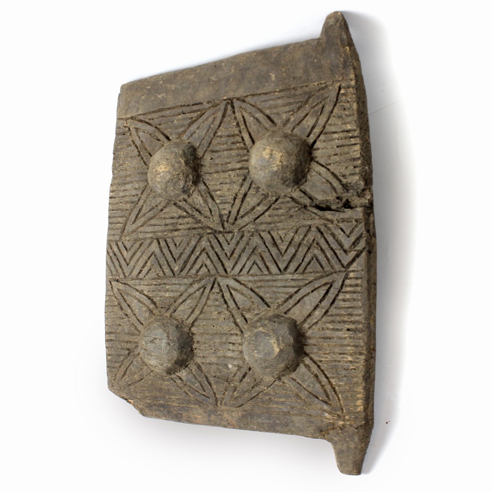 ドゴンの人々が穀物倉庫に使用するの木扉のレプリカです。神話に登場する動物や祖先を表す人物など様々なデザインが手彫りされており、これらには貴重な食料を守るための祈りが込められています。重厚な木の質感とプリミティブでモダンな存在感溢れるアフリカンアートです。リビングや玄関のインテリアに。