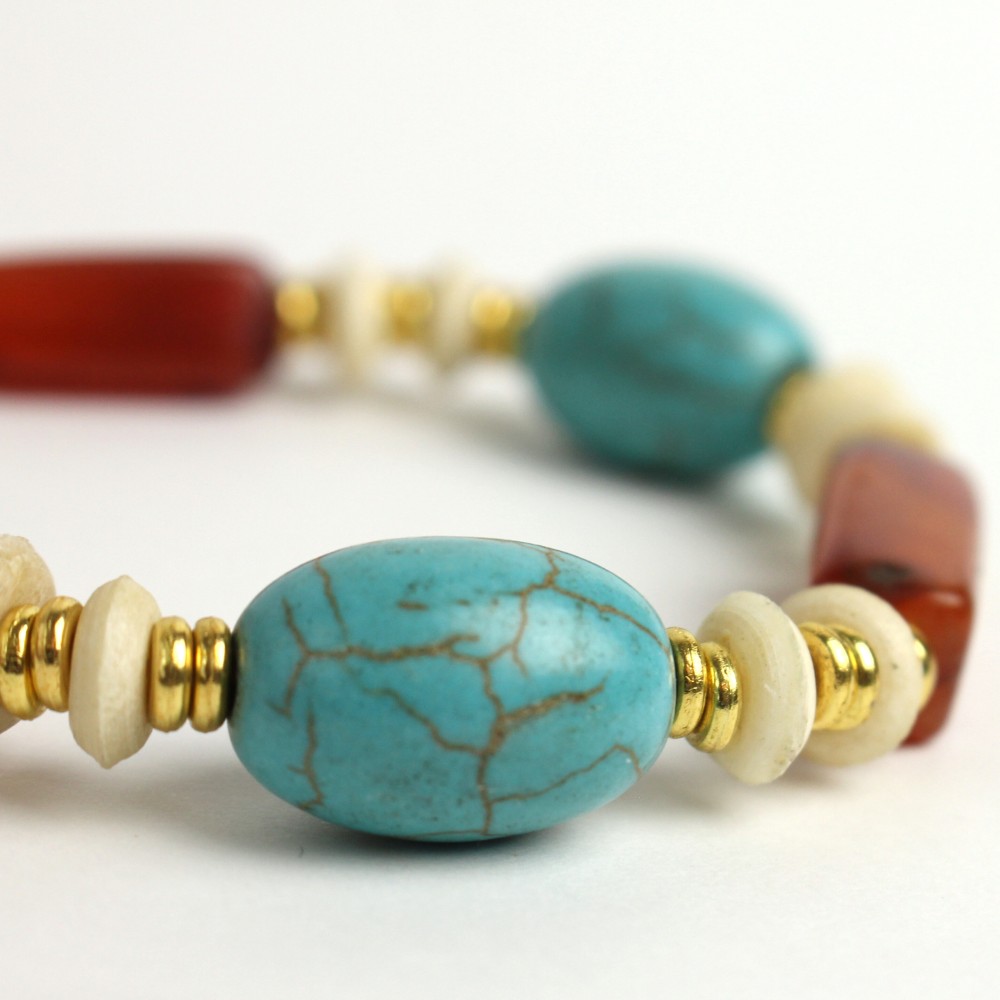 アフリカンビーズと牛骨ビーズで手作りされた、お洒落なバングルです。