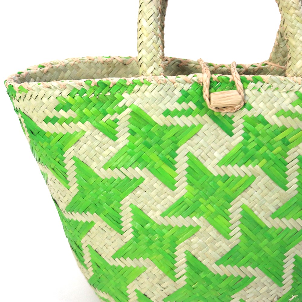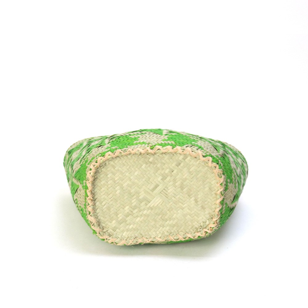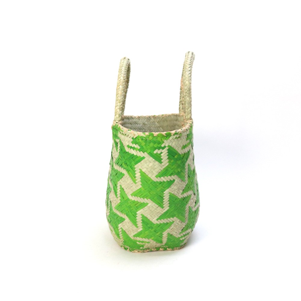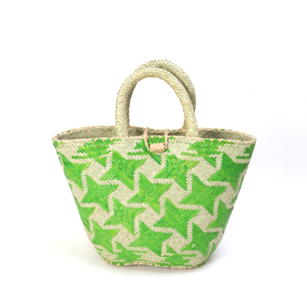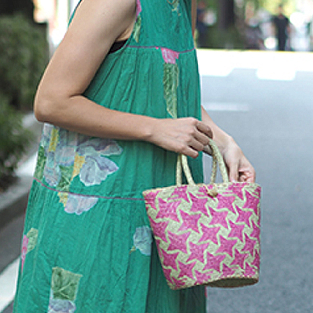 染色した水草を編み込んで星柄を表現したユニークなかごバッグです。マダガスカルでは「ござ」が日常的に使われており、昔から水草を使ってござが頻繁に織られていました。その織りの技術を応用してかご編みも盛んにおこなわれています。