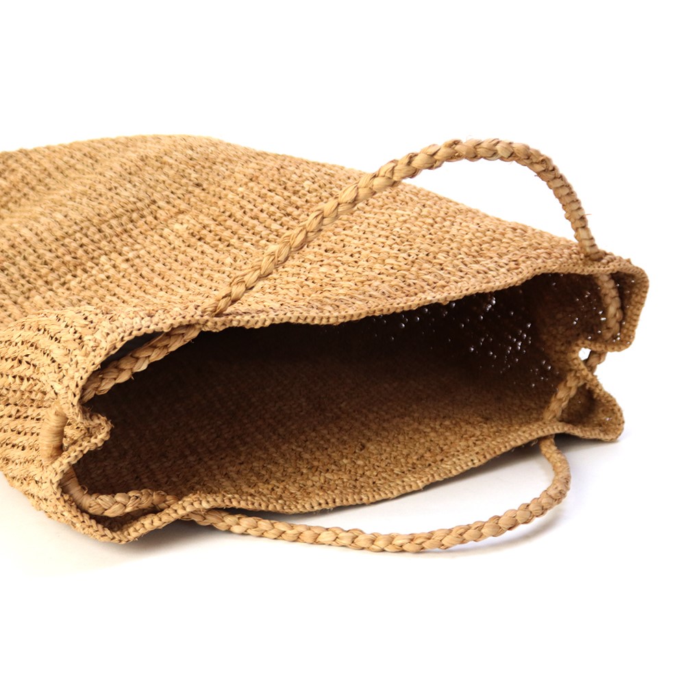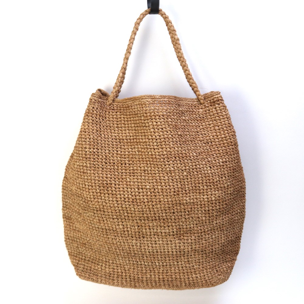 【受注商品】ラフィアかぎ編みバッグ 長方形細編柄 紅茶