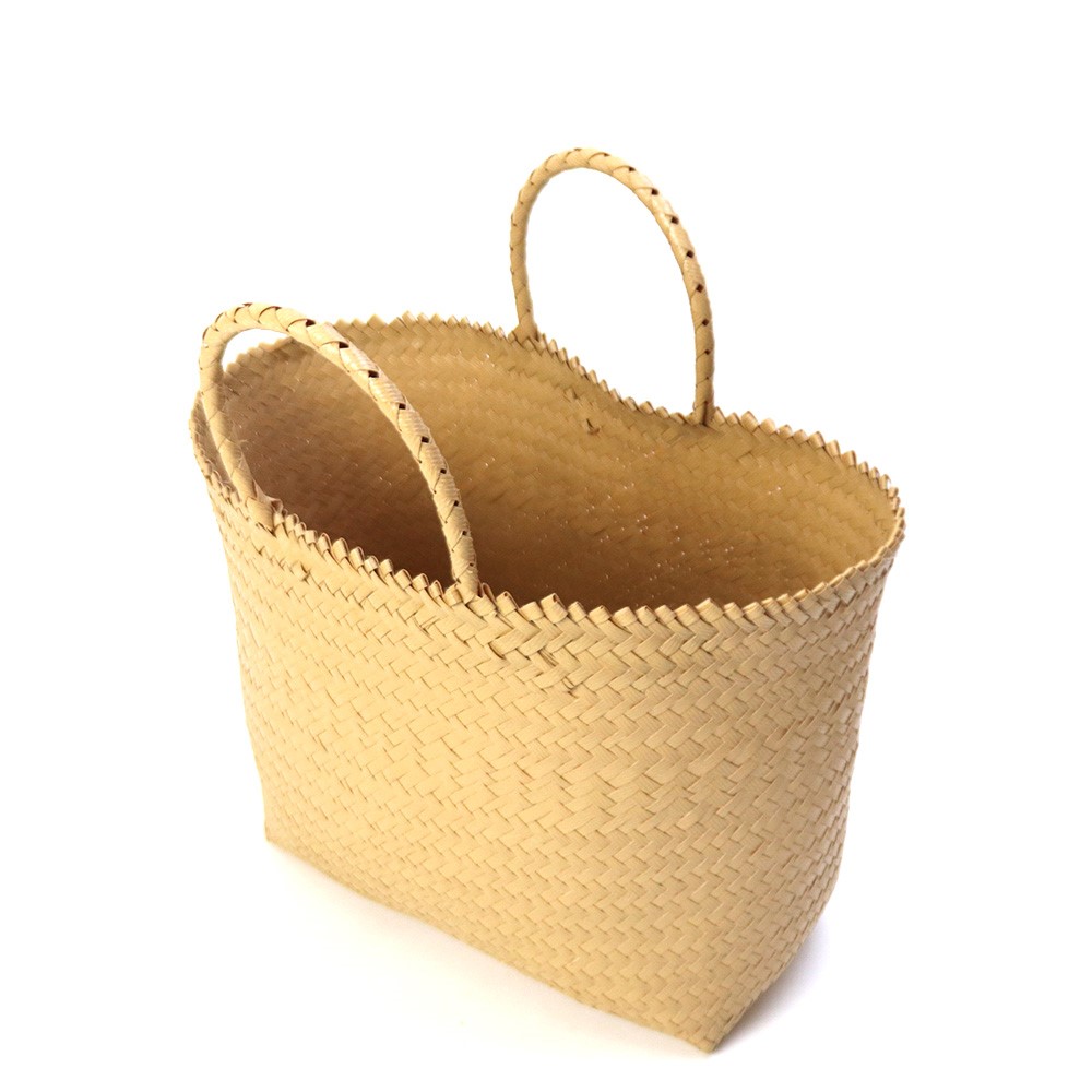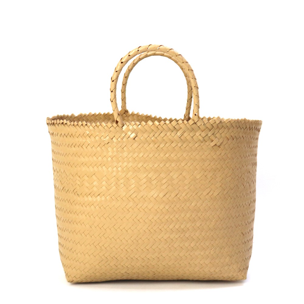 ベージュ単色タイプのスタイリッシュなプラスチックマルシェかごです。伝統的なカゴ編み技術が生かされたシンプルなテイスト。外出やお買い物にも重宝します。