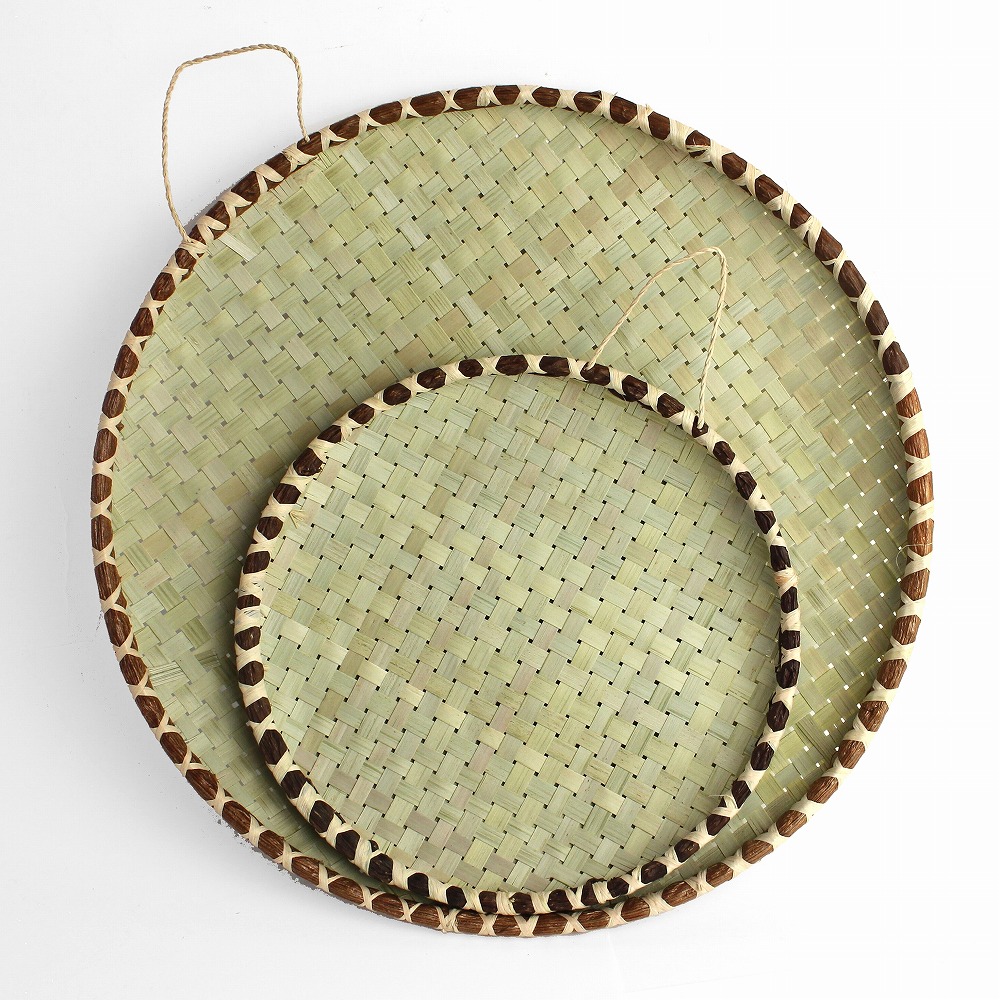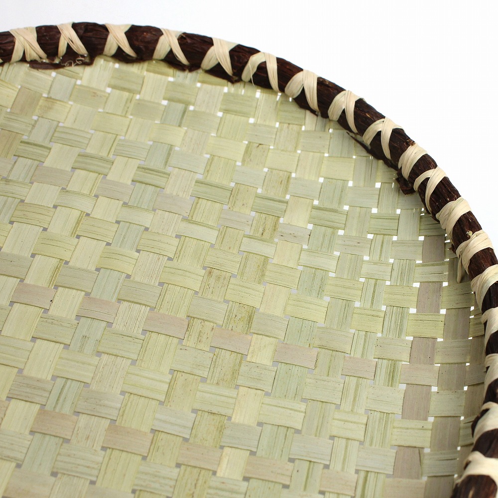 マダガスカル、タマタブ地方で作られる平かごです。「ラビナラ」は、マダガスカル原産、大きく広げた葉が特徴的な「タビビトノキ」の葉です。シンプルで使いやすいフォルム、インテリアバスケットとしても活躍しそうです。