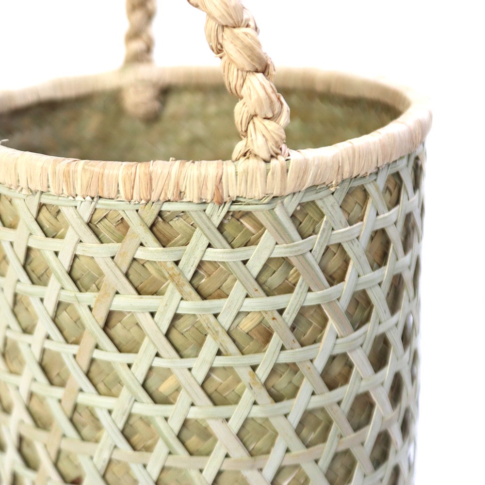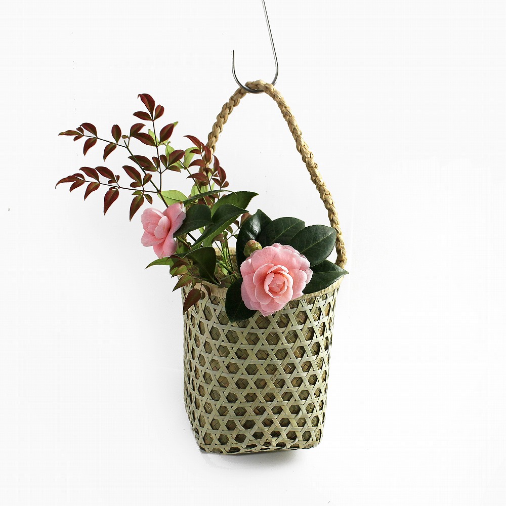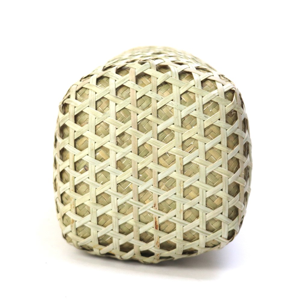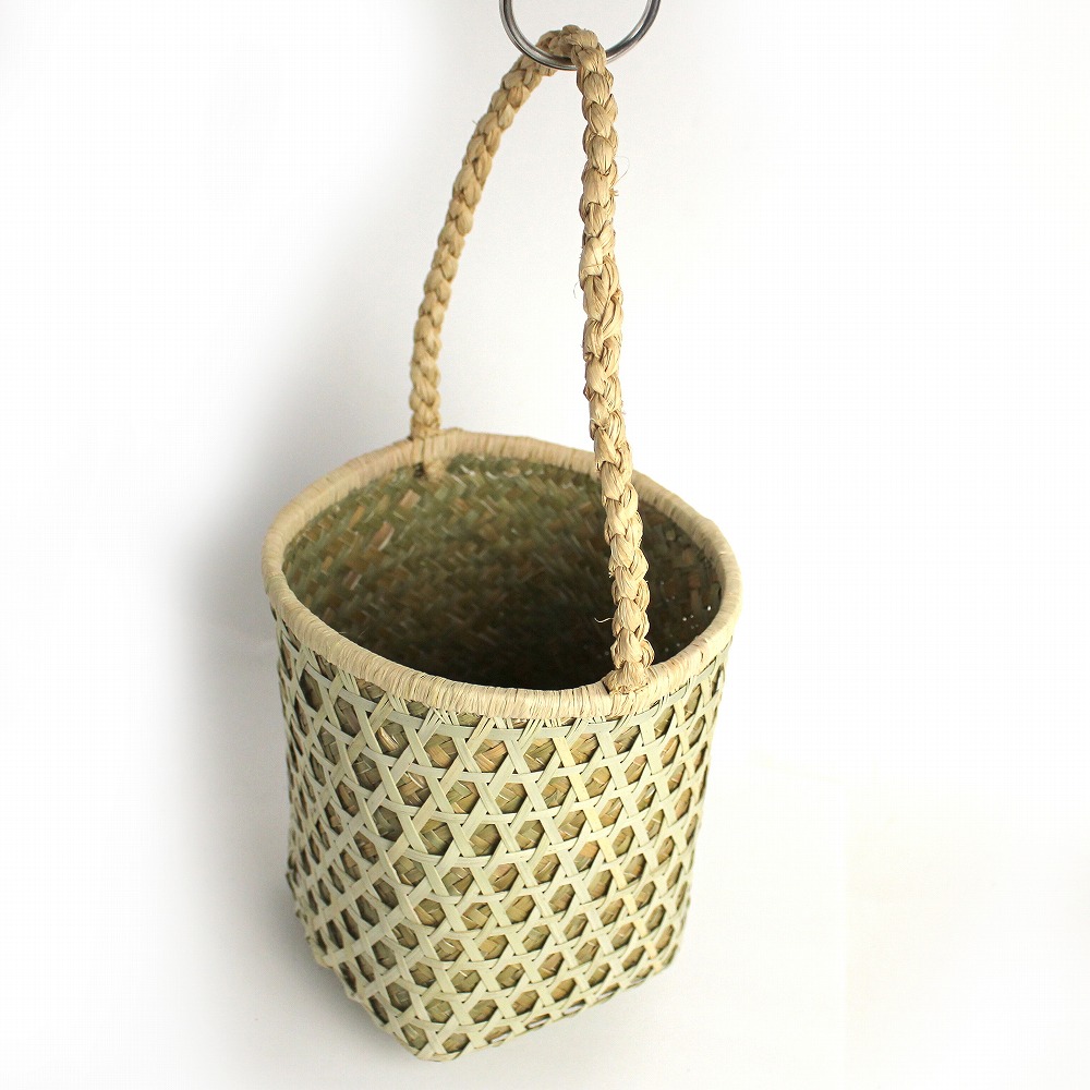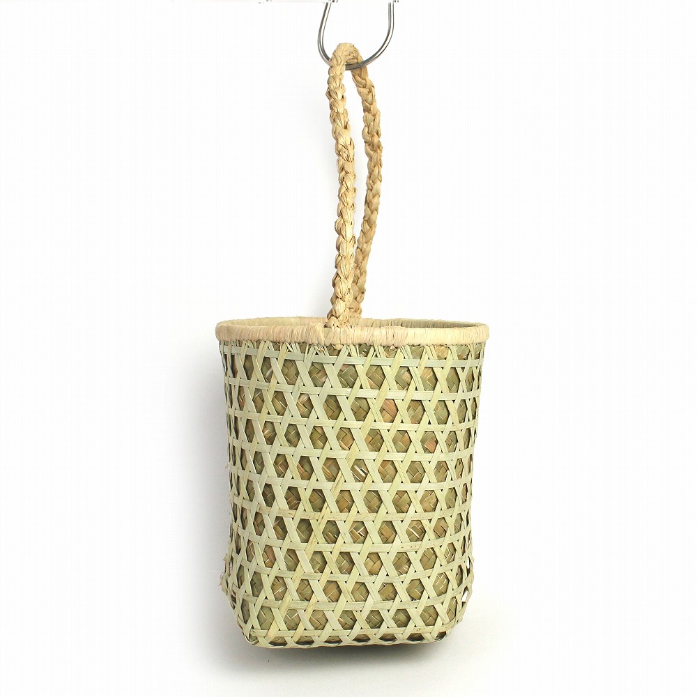 100%植物製のかごです。かたちは霧吹きなどで少し湿らせて整えることが可能です。保管する際は、変色しやすくなりますので直射日光や強い照明が近くに当たる場所などはお避け下さい。また、湿気はカビの原因になりますのでお気を付け下さい。