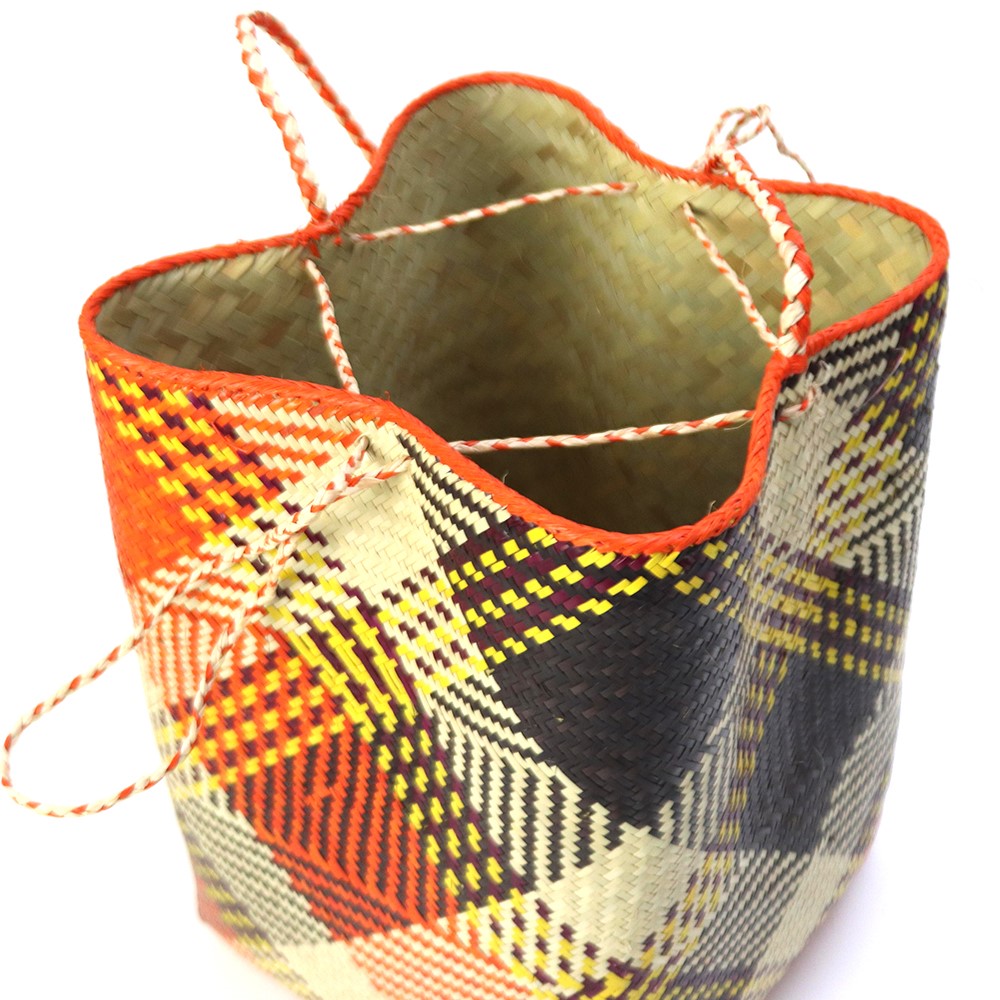 100%植物製のかごです。かたちは霧吹きなどで少し湿らせて整えることが可能です。保管する際は、変色しやすくなりますので直射日光や強い照明が近くに当たる場所などはお避け下さい。また、湿気はカビの原因になりますのでお気を付け下さい。●色落ち:汗や雨などによる水濡れによって色落ち、型崩れの恐れがあります。製品のお取り扱いに十分にご注意ください。