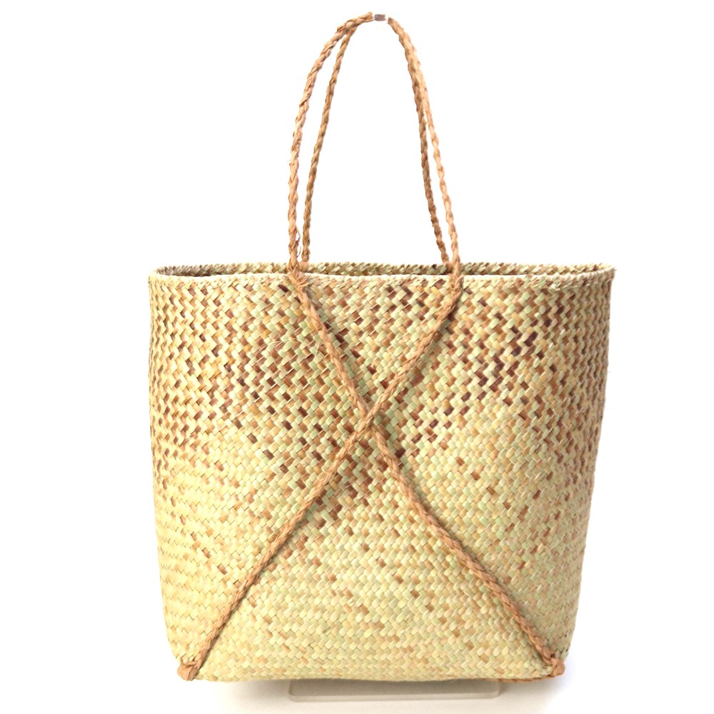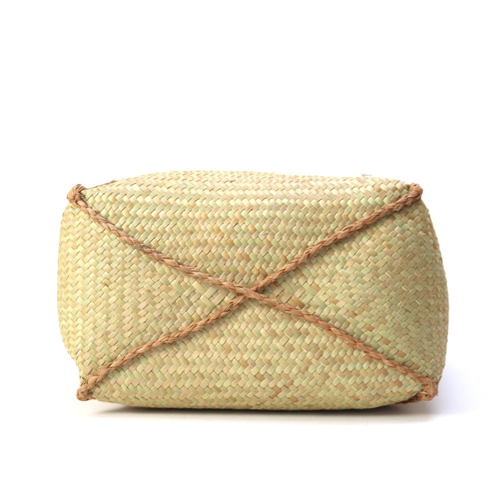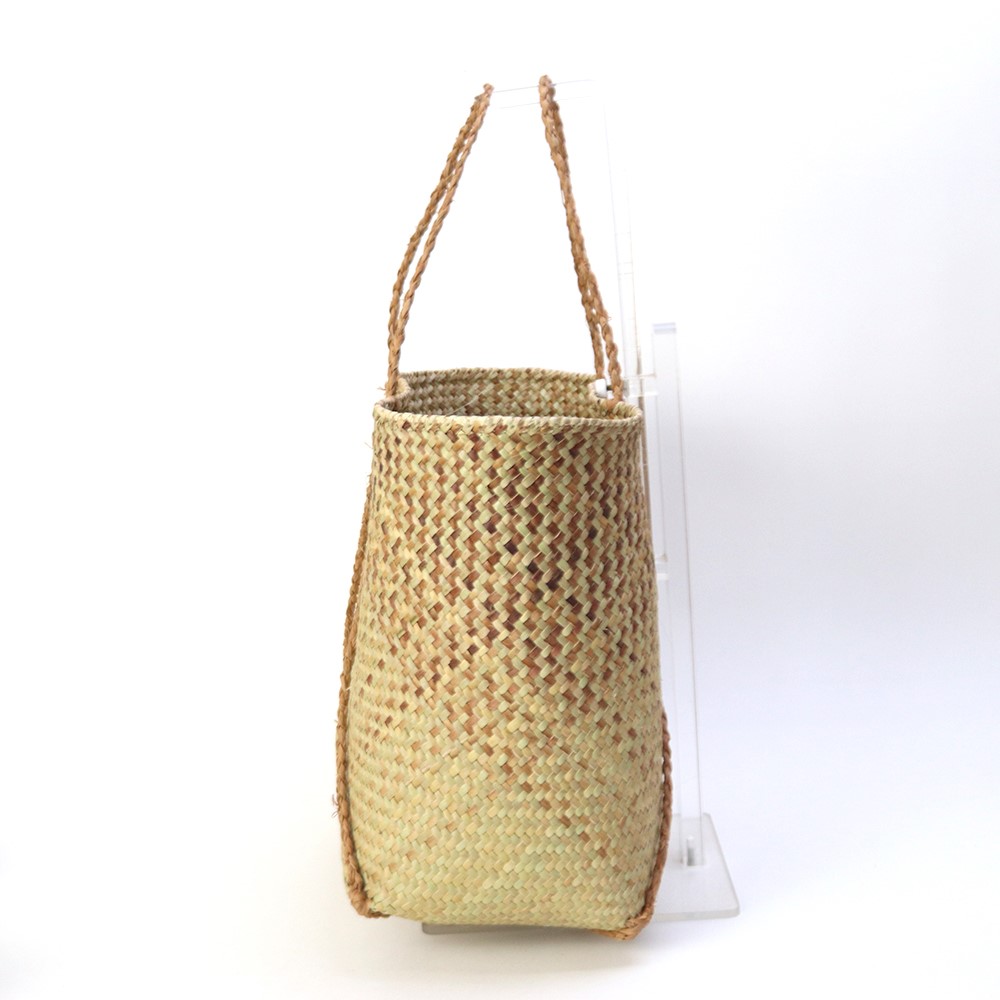 100%植物製のかごです。かたちは霧吹きなどで少し湿らせて整えることが可能です。保管する際は、変色しやすくなりますので直射日光や強い照明が近くに当たる場所などはお避け下さい。また、湿気はカビの原因になりますのでお気を付け下さい。