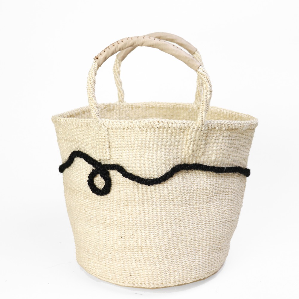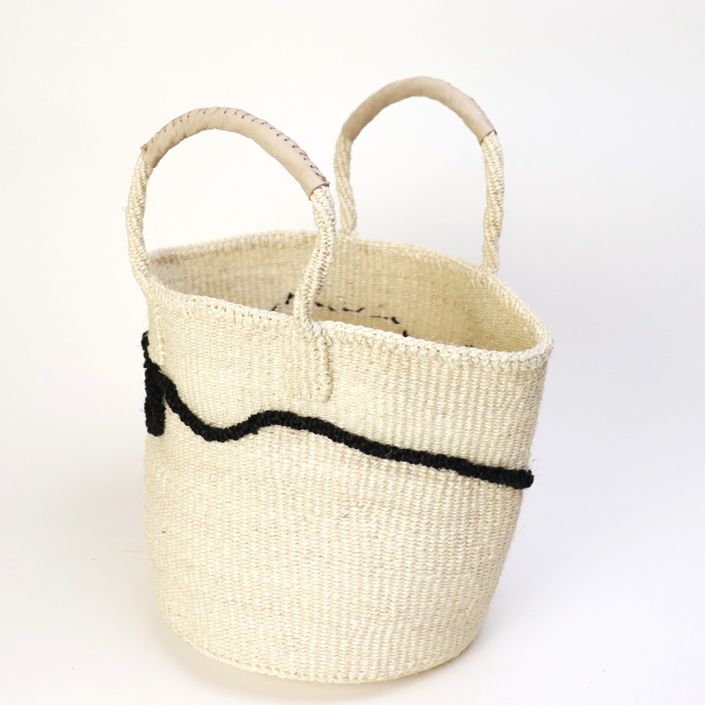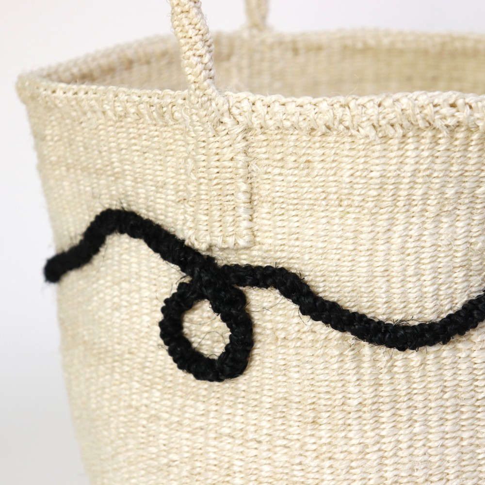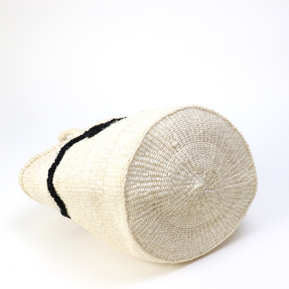 サイザルとはリュウゼツランの一種で、その繊維は歴史的に広く使われていた繊維である麻にちなんでサイザル麻と呼ばれています。ケニアのキクユ人やカンバ人の伝統技術により サイザルで編んだバスケット(=キオンド)は穀物の運搬や保存にケニアでは使われていました。かごを編む技術は母から娘へと受け継がれ、ケニアの小さな農村の女性を中心にひとつひとつ手作りで編み上げています。現在ではサイザルバッグを編むことがケニアの村の重要な現金収入源となり、各家庭の子どもたちの学費となり生活費の足しとなっています。