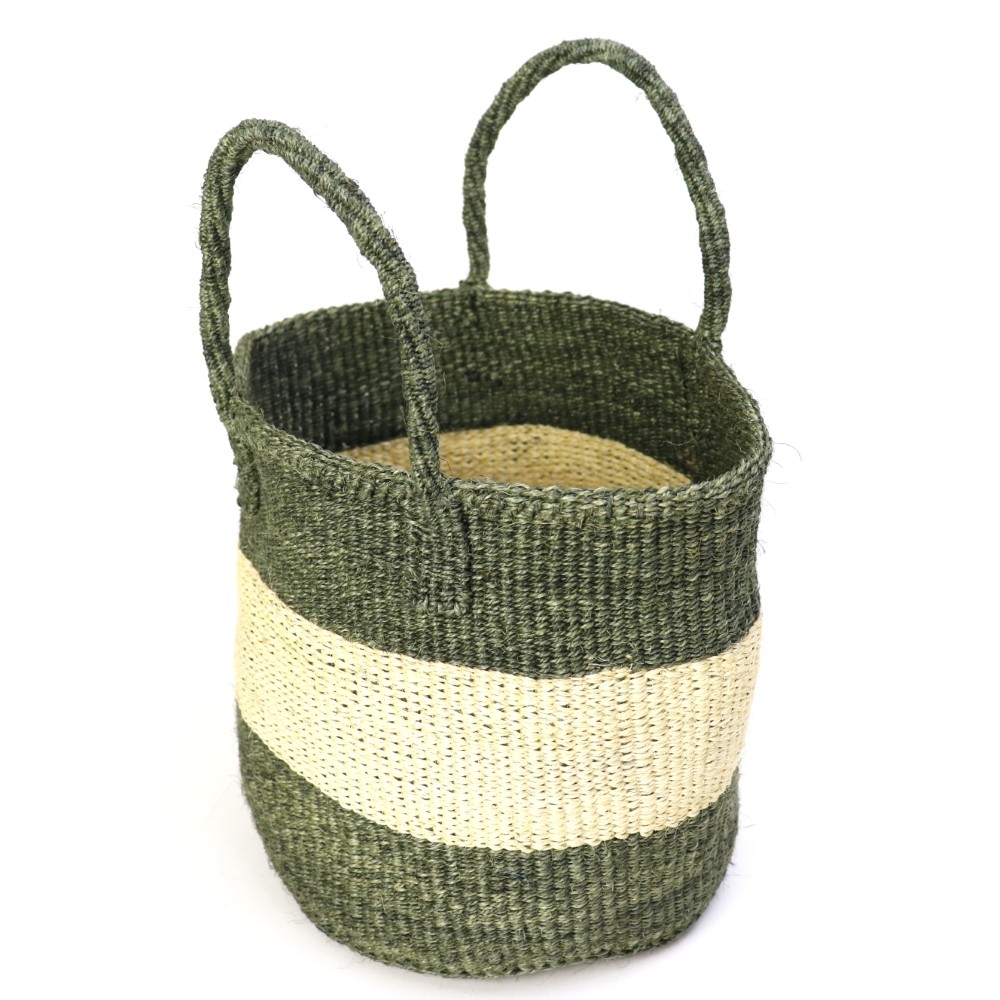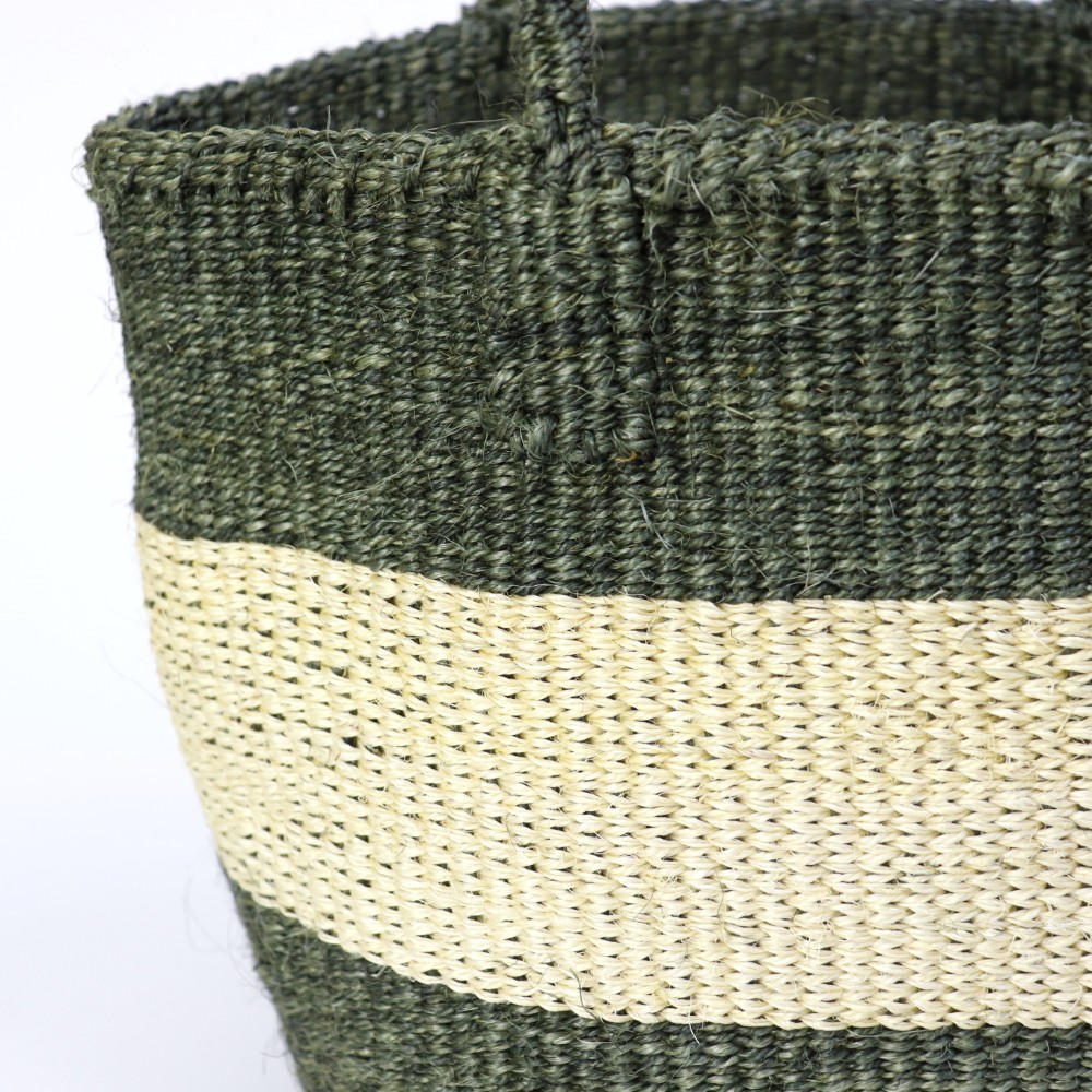 サイザルとはリュウゼツランの一種で、その繊維は歴史的に広く使われていた繊維である麻にちなんでサイザル麻と呼ばれています。ケニアのキクユ人やカンバ人の伝統技術により サイザルで編んだバスケット(=キオンド)は穀物の運搬や保存にケニアでは使われていました。かごを編む技術は母から娘へと受け継がれ、ケニアの小さな農村の女性を中心にひとつひとつ手作りで編み上げています。現在ではサイザルバッグを編むことがケニアの村の重要な現金収入源となり、各家庭の子どもたちの学費となり生活費の足しとなっています。