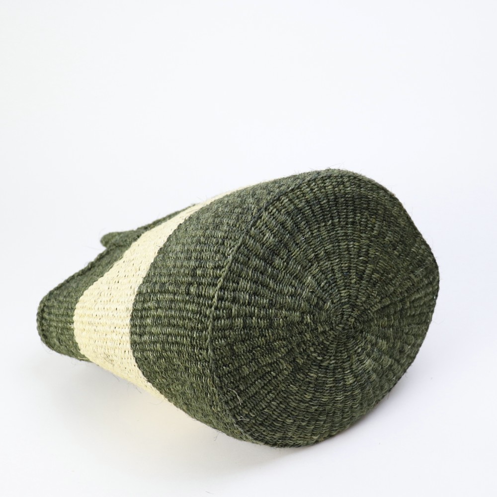 サイザルバッグ9インチ ヘリンボーン編みセンター オリーブxクリーム